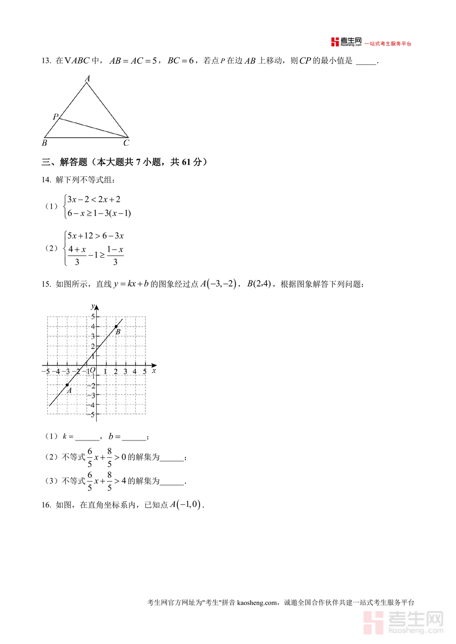 《精品解析:广东省深圳市龙岗区宏扬学校2024-2025学年八年级下学期4月期中数学试题(原卷版).docx》是一份针对八年级下学期期中阶段数学学习成果检测的优质备考资料。该资料严格依据人教版八年级数学下册第一章至第三章核心知识点命制(涵盖轴对称与中心对称图形识别、不等式与不等式组解法、直角三角形判定及性质应用等内容),题型包含选择题8道、填空题5道、解答题7道共20题,满分设置为100分。其特色在于紧密贴合深圳龙岗区宏扬学校的教学进度与命题风格,题目设计兼顾基础概念巩固与综合能力拓展,能精准反映该阶段学生需达成的学科素养目标。