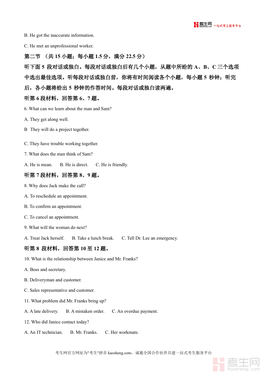 本试卷适用于备战高考希望提高英语成绩的高三学生也适合需要权威测试资料指导教学的英语教师以及寻求高质量练习资源支持学生学习的辅导机构其必要性在于能弥合日常学习与备考之间的差距为学生提供体验顶尖学校考试严谨性的机会无需获取学校内部资源其不可替代性来自两所名校的独特合作结合其教学专长和考试见解形成一份全面试卷其长期价值体现在可反复用于复习和练习帮助学生巩固语言基础持续提升整体英语水平使其成为有效备考不可或缺的部分