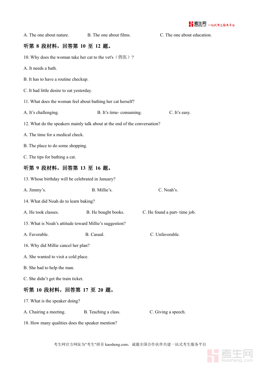 这份资料的核心用途在于帮助学生进行阶段性知识巩固与应试能力提升。使用场景包括课堂同步练习、课后自主复习及模拟考试训练等。通过完成该试题,学生能够熟悉考试时间分配(如120分钟完成150分题目),掌握各题型的解题技巧;教师可将其作为教学评估工具,精准把握学生学习薄弱环节;家长也能借助该资料了解孩子学习进度。备考优势体现在其针对性强,能有效训练学生的听力理解、快速阅读及信息提取能力,为后续高考复习打下坚实基础。