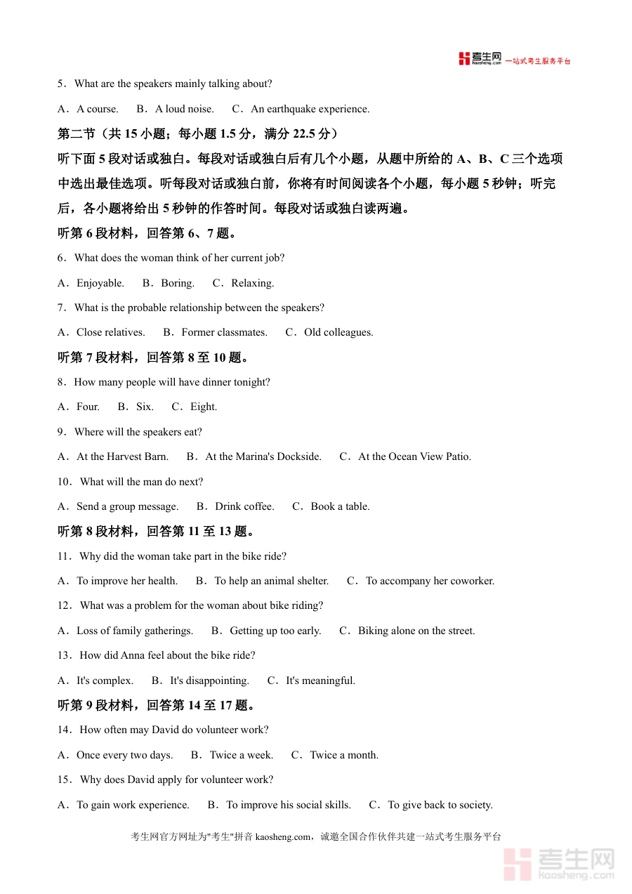 该资料适用于沧州市2026届高三学生、高中英语教师及关注孩子备考进度的家长;作为本地高三初期复习阶段的重要备考资料,它不仅是真题与解析的集合,更是学生了解本地命题趋势、优化复习计划的关键依据,其针对性与实用性使其成为高三英语备考过程中不可或缺的资源,长期助力学生构建系统的知识体系与应试能力框架,为后续的一轮、二轮复习奠定坚实基础。