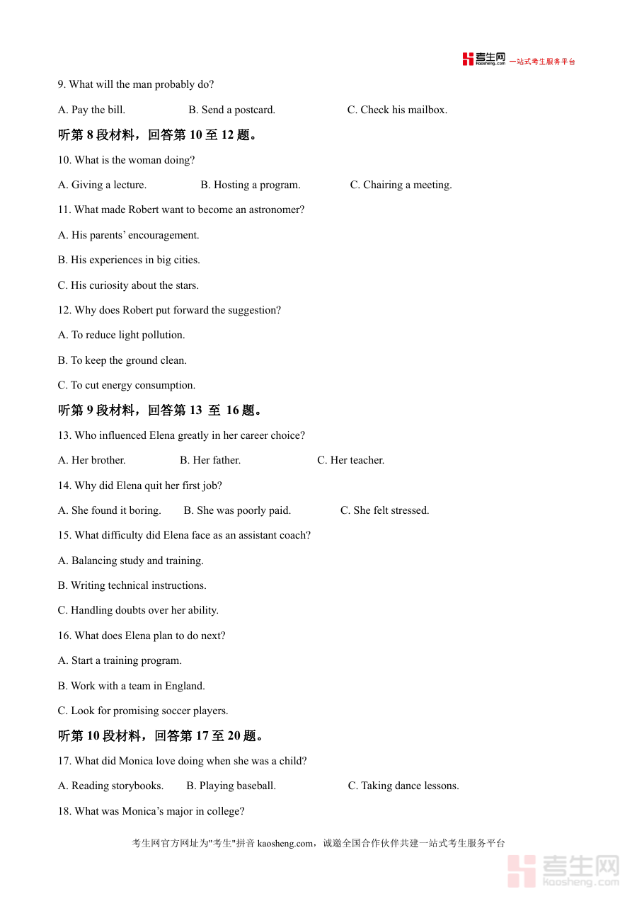 本资料适用于海南省高三年级学生(尤其是目标院校为文昌中学或同类优质高中的学生)、高中英语教师及关注孩子学业进展的家长群体。总结而言,这份校考真题资料具有不可替代的实用价值:它不仅是学生进行日常练习与能力检测的重要备考资料,更是反映区域教学动态与考试趋势的参考依据;其长期价值体现在帮助学生积累应试经验、强化核心技能(如听力理解的精准度与阅读理解的速度),为后续的高考冲刺奠定坚实基础。对于学生来说,通过反复练习这份真题,能有效提升应试能力,熟悉考试题型与答题技巧;对于教师和家长而言,它也是了解学生学习状况、优化教学与辅导策略的重要工具,是高三英语复习阶段不可或缺的优质资源。