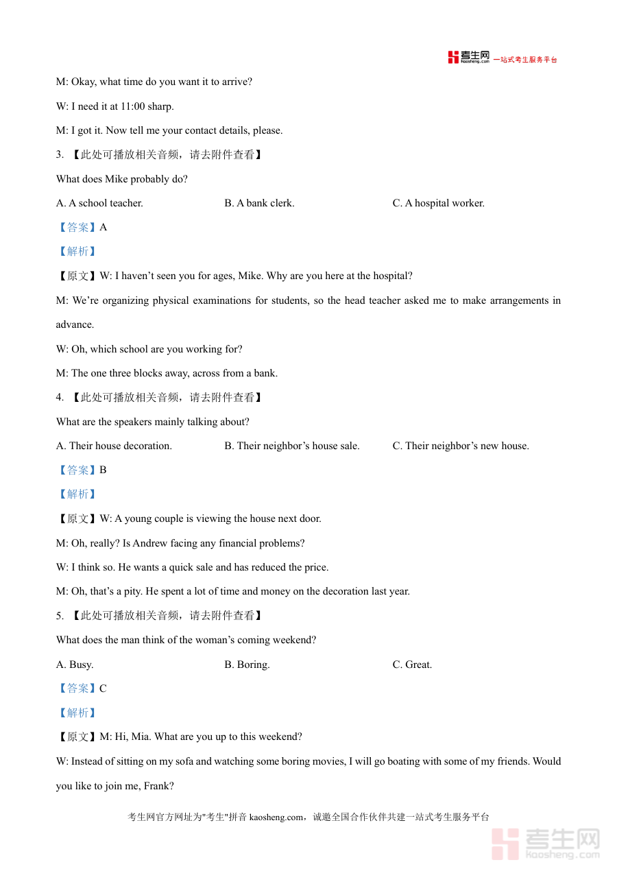 该资料的核心用途在于帮助高三学生进行针对性的应试能力提升训练,适用场景包括课堂同步练习、课后自主复习及考前模拟冲刺。学生可通过完整作答模拟试卷熟悉考试节奏与时间分配,借助详细解析定位知识薄弱点(如听力理解中的场景判断或细节捕捉能力不足);教师则可将其作为课堂教学案例或作业布置材料,引导学生深入理解考点。备考优势体现在资料的权威性与实用性:依托遵义四中的教学经验,题目设置贴合本地高考趋势,解析部分则注重方法迁移,让学生掌握同类题型的通用解题策略,有效提升备考效率。
