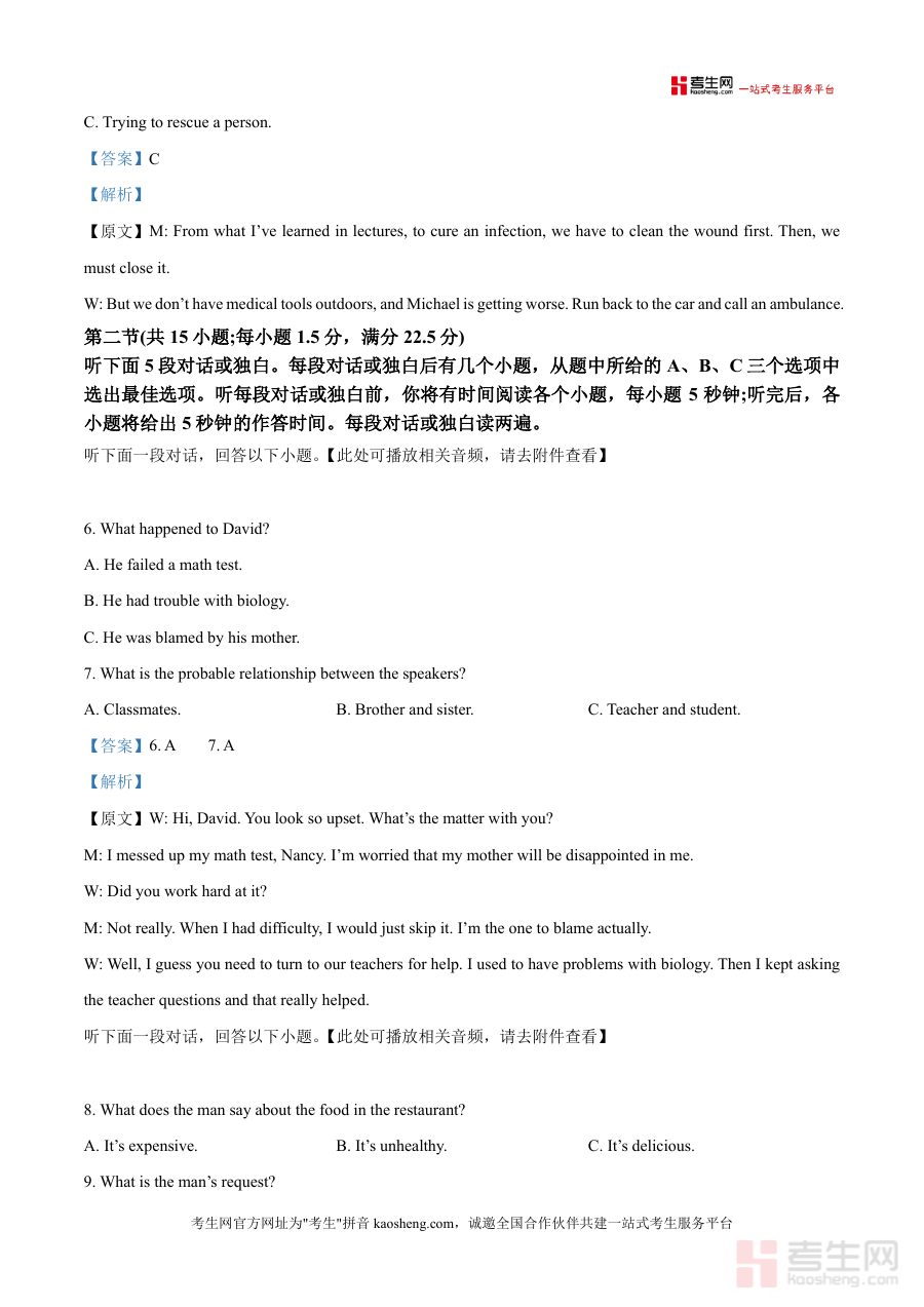 这份资料的核心用途是支持高三学生进行真题实战训练与错题复盘,适用场景包括日常自主练习、课堂同步讲解及模考后的针对性提升。用户价值体现在通过严谨解析快速定位知识盲区:例如听力部分对不同题型的解题思路点拨,能帮助学生熟悉出题规律与答题技巧;备考优势在于其源自辽宁名校联盟的命题资源,贴合本地高考命题趋势,解析内容兼具专业性与指导性,可有效弥补学生对题型规律把握不足的问题,提升解题效率与准确率。