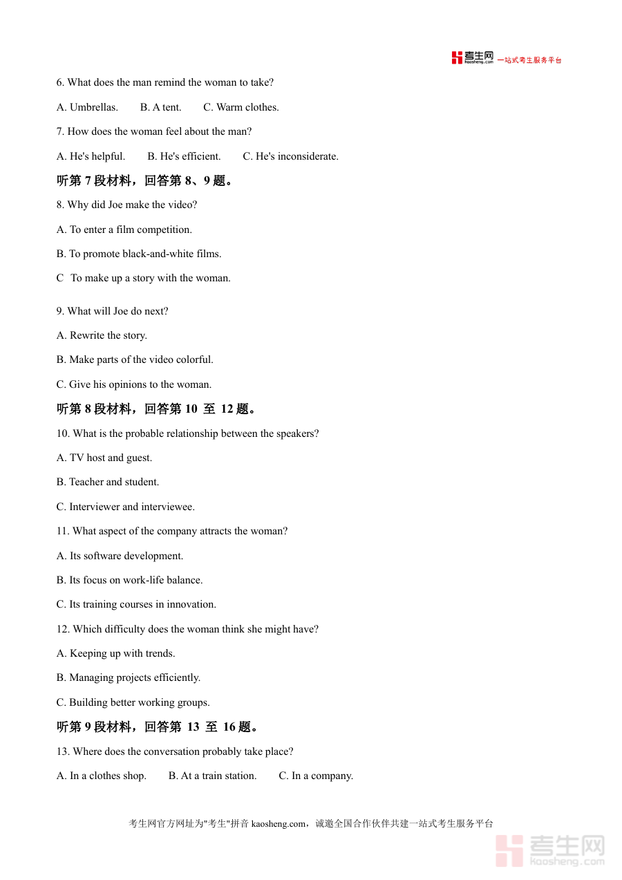 这份资料的核心用途在于辅助高三学生进行针对性备考训练,适用于课堂同步练习、课后自主复习及模拟考试场景。学生可通过完成听力部分的不同题型(如短对话、长对话、独白)提升听力理解与信息捕捉能力;阅读部分的篇章分析则有助于培养快速阅读、细节定位及主旨归纳技巧。作为真题解析类资料,它能让学生直观了解自身知识薄弱点,进而调整备考策略,增强应试能力。此外,教师可借助该试题设计教学活动,引导学生掌握解题方法与思路,提升教学效率。