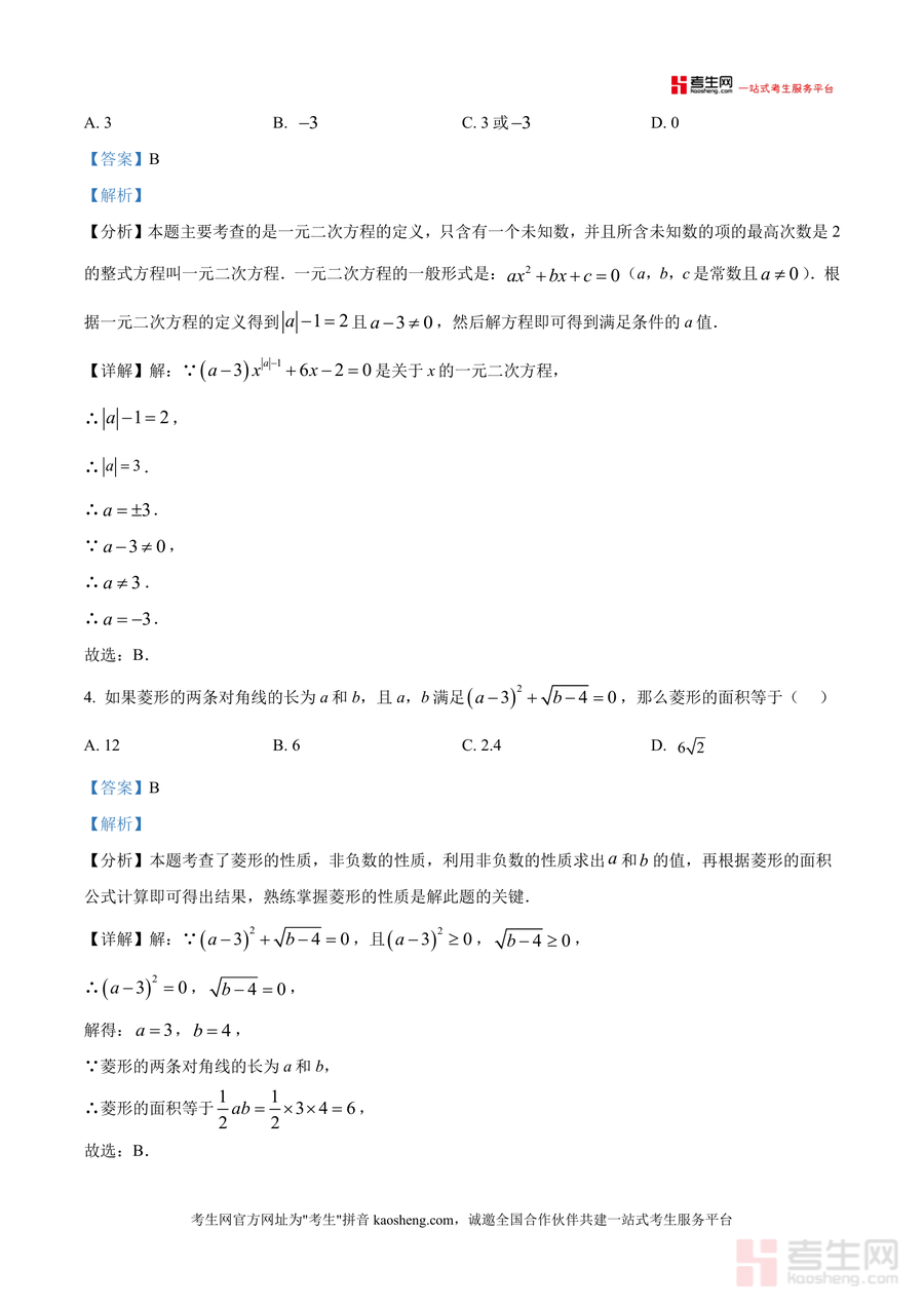 《精品解析:广东省深圳市宝安中学2025-2026学年九年级上学期第四周周测数学试卷(解析版).docx》是一份聚焦深圳宝安中学九年级上册数学周测真题及深度解析的专业备考资料。文件包含选择题8道、填空题5道及解答题4道三大题型模块,覆盖一元二次方程定义与解法、相似三角形判定与性质、比例性质应用、菱形与矩形几何特性等核心考点。其特色亮点在于每道题配备详尽解析:含考点定位分析(如"一元二次方程根与系数关系""平行线分线段成比例定理")、分步解题思路推导及易错点提示(如"忽略菱形对角线互相垂直平分性质""一元二次方程二次项系数非零条件"),助力学生精准把握考点本质。
