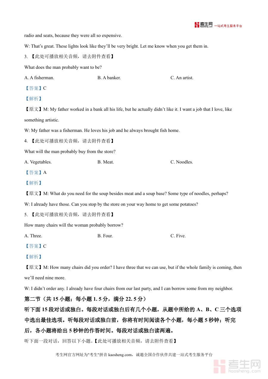 该资料核心用途在于辅助高三学生高效完成首轮复习阶段英语能力提升与应试准备。学生可用于课后自主练习,模拟考试流程后对照解析分析错题原因,尤其针对听力易错点反复研磨;教师可将其作为课堂复习素材,结合解析引导学生掌握听力策略。使用场景覆盖日常练习、阶段性测评及考前冲刺等环节,能帮助学生熟悉本地命题风格与难度,弥补听力薄弱环节,提升整体应试能力。相较于普通练习资料,其通过原文再现与逻辑拆解让学生知其然更知其所以然,显著提高复习效率。