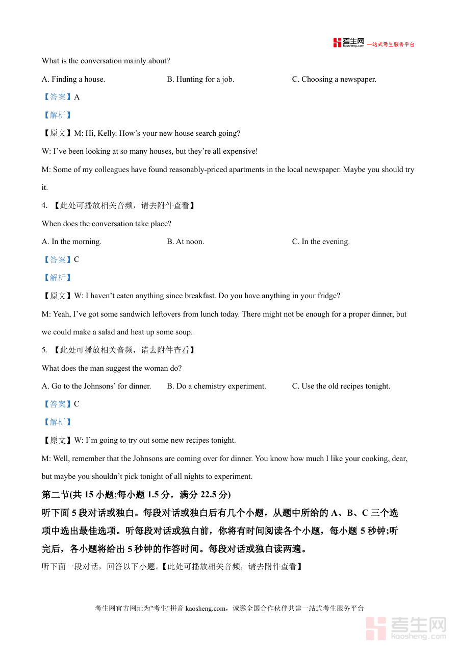 《精品解析:2026届四川省泸州市叙永第一中学校一模英语试题(解析版)》是一份聚焦叙永一中高三英语诊断性模考的专业备考资料,包含完整试题卷与深度解析内容。试题卷严格遵循该校一模考试结构(满分150分、120分钟时长),涵盖听力(两节共20小题)等核心题型;解析部分针对每道听力题提供原文转录、正确答案及逻辑清晰的解题分析,如通过对话中的关键语句(如“they promise never to share my data”)引导学生理解选项背后的命题意图,突出考点与答题技巧的结合,是兼具权威性与实用性的真题解析资料。