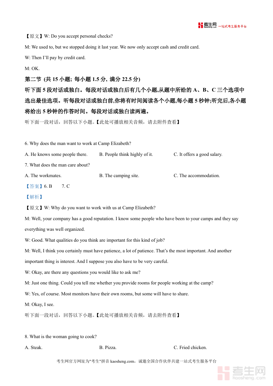 该资料的核心用途在于助力学生进行针对性复习与错题分析,使用场景涵盖课堂教学辅助、课后自主练习及考前冲刺训练等。对于学生用户而言,通过研读解析可快速定位知识薄弱点,掌握听力理解的关键技巧与答题策略;对于教师用户,可作为教学案例库用于讲解考试重难点;对于家长,则能直观了解孩子的学习状况与考试要求。其备考优势体现在依托名校模拟试题资源,内容贴近实际高考难度与题型设置,帮助使用者高效提升应试能力与英语综合素养。