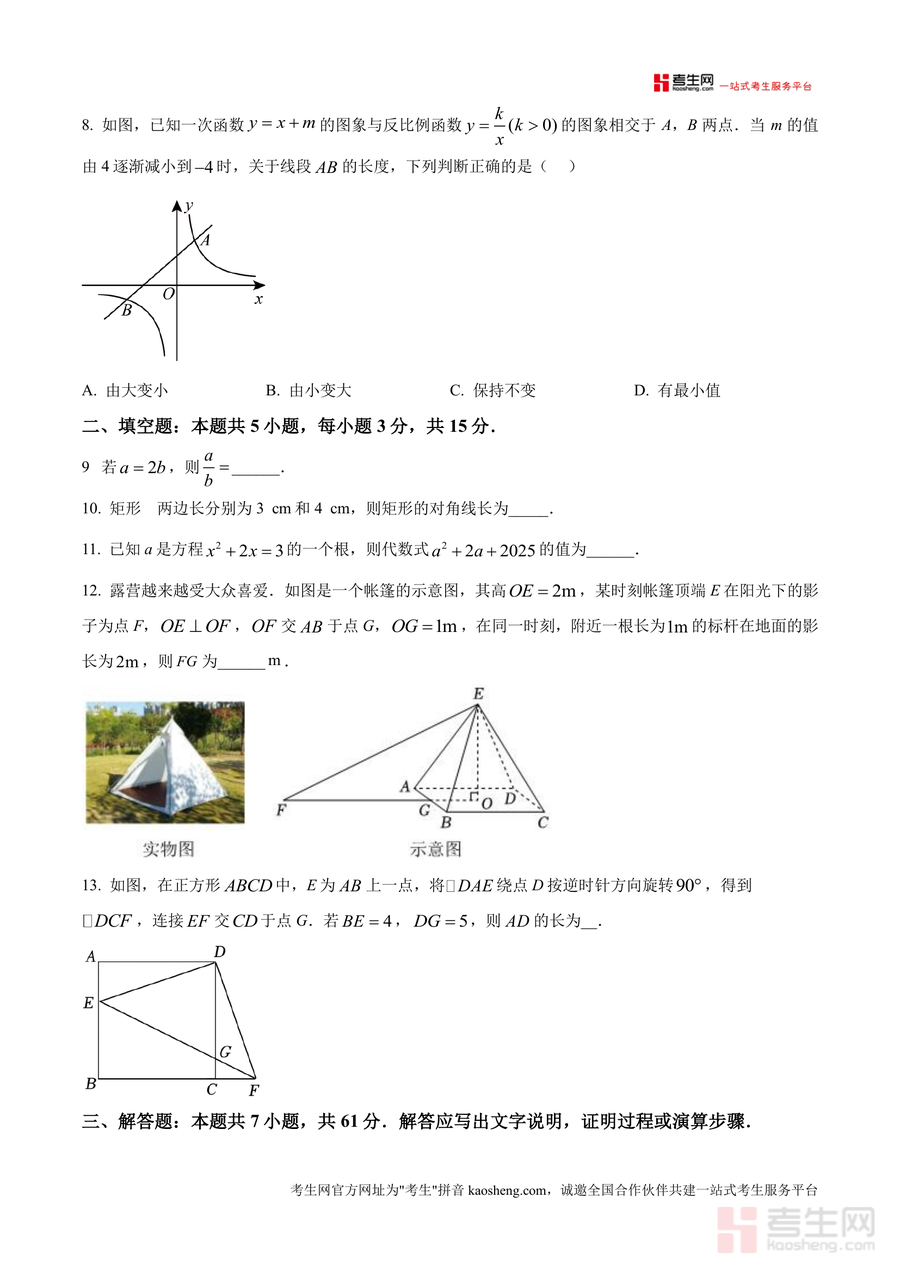 本试卷适用于2025年深圳市中考数学考生、初中数学教师及关注孩子备考进度的家长。作为贴合本地考情且题型全面的适应性训练资料,它具有不可替代必要性:能让考生提前熟悉考试节奏与题型变化,避免考场上因不适应失分;其长期价值在于帮助考生积累解题经验,形成系统知识框架,为后续冲刺阶段复习奠定坚实基础。无论是基础巩固还是能力提升,这份试卷都是深圳中考数学备考过程中的重要工具,助力考生高效备战中考。