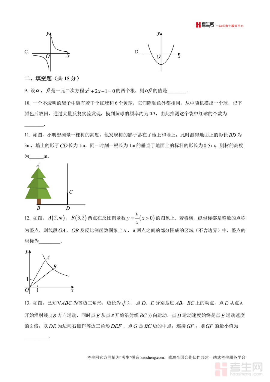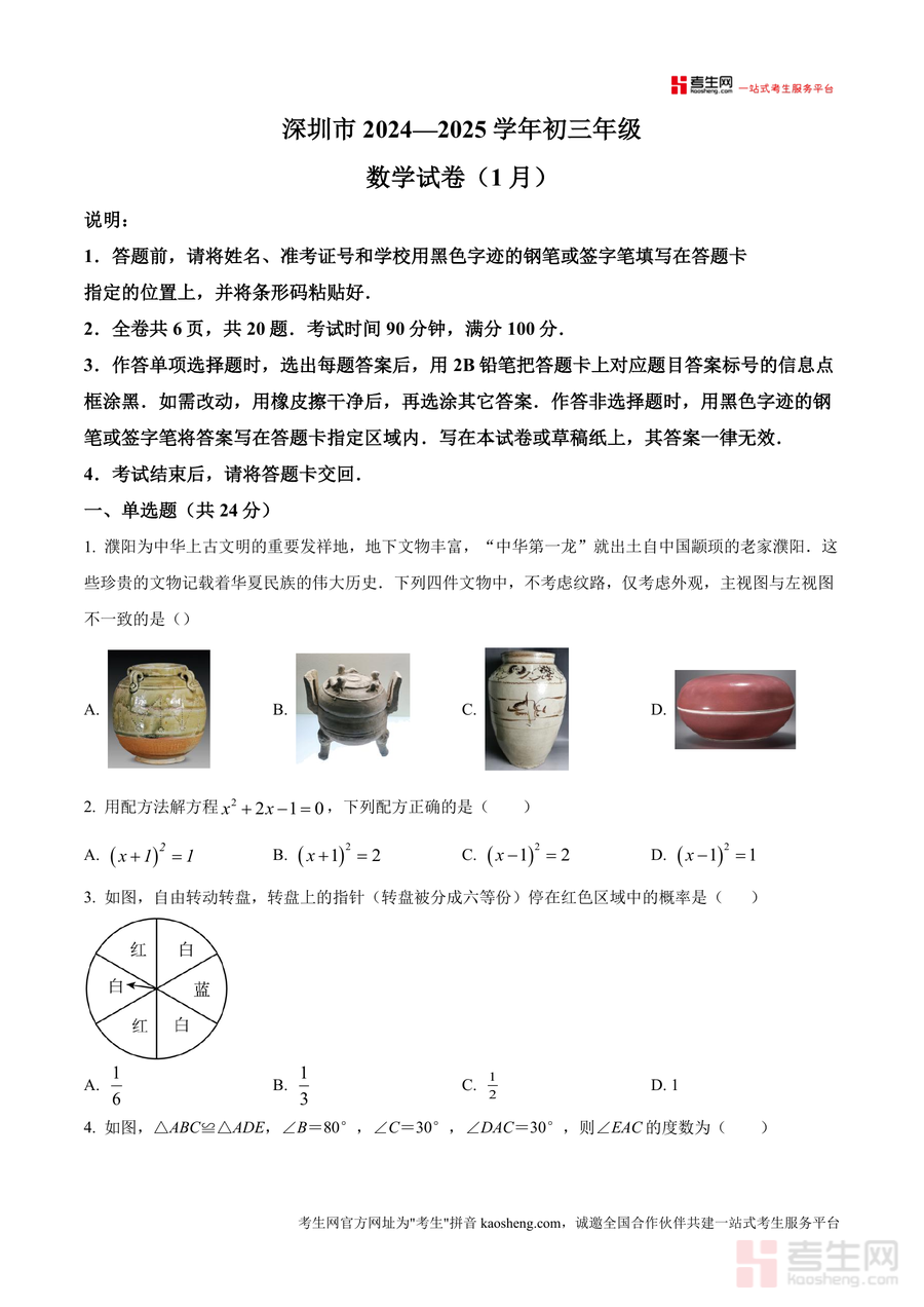 该资料适用于广东省深圳市福田区及周边区域九年级学生、初中数学教师及关注孩子中考备考进度的家长群体。作为2025年最新发布的一模联考原卷资料,它具有不可替代的时效性与地域性,能精准反映福田区当前中考数学备考重点方向;长期来看,该资料可作为学生复习阶段反复演练与知识点巩固重要素材,帮助强化解题思路与技巧,是中考数学备考过程中不可或缺且具有长期参考价值的专业备考资料。