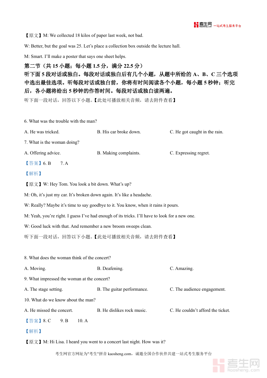 《精品解析:2026届浙江省温州市普通高中高三上学期第一次适应性考试英语试题(解析版)》是一份针对温州市2026届高三学生英语学科适应性测试的专业备考资料,包含完整试题卷及逐题详细解析。该资料覆盖听力、阅读理解、写作等全题型,每道题均配有原文内容、答案解析及解题思路点拨,特色亮点在于结合本地考试命题趋势,融入实用应试技巧,帮助学生精准把握考点分布与答题策略,同时解析中明确指出常见错误选项的干扰逻辑,助力学生规避答题陷阱。