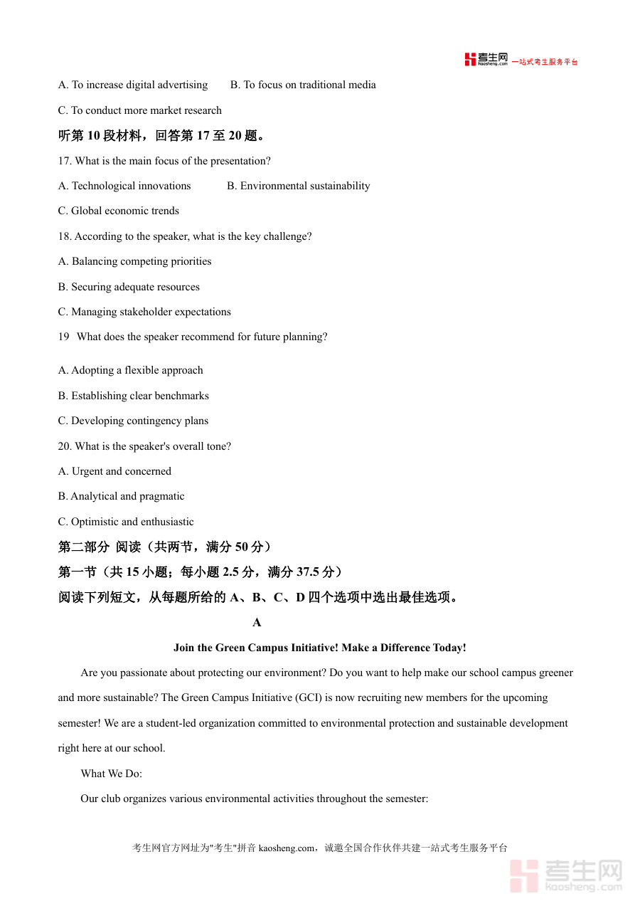 这份试卷的核心用途是帮助高三学生进行阶段性英语水平评估与应试能力提升。使用场景包括学生自主模拟考试训练、教师课堂教学检测以及学校统一组织的适应性测试等。通过完成该试卷,学生可熟悉高考英语的题型结构与时间分配,精准定位自身知识薄弱点,进而针对性调整备考策略;教师则可借助试卷了解学生群体的学习状况,优化教学内容与方法。此外,作为区域性重点高中联合体的模拟题,其试题质量与命题方向具有较高参考价值,能为学生提供贴近高考实际的备考体验。