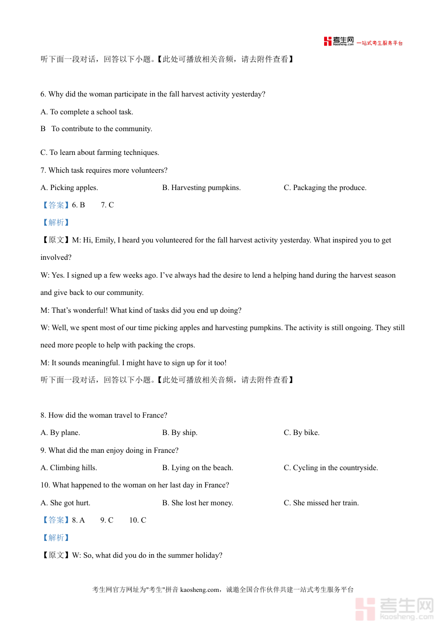 本资料适用于广州市及周边地区高三英语备考学生、高中英语教师及关注孩子学业的家长群体。作为一份高质量的真题解析资料,它填补了本地联考精细化解析的空白,具有不可替代性;长期使用可帮助学生构建系统的解题思维,巩固核心知识点,为高考英语取得优异成绩奠定坚实基础。无论是日常练习还是考前冲刺,这份资料都是提升英语应试能力的重要工具。