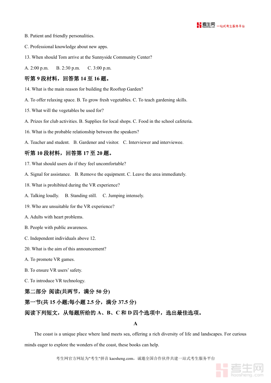 该资料核心用途为评估一轮复习知识掌握程度与技能应用水平,使用场景包括课堂限时训练、课后自主刷题及模拟考试环境构建;用户价值体现在通过完整试卷结构帮助学生掌握联考题型分布与时间分配规律,备考优势则是能精准暴露听力理解、阅读理解等模块的薄弱环节,有效提升应试能力,并为教师调整教学策略、学生优化复习计划提供数据支撑。