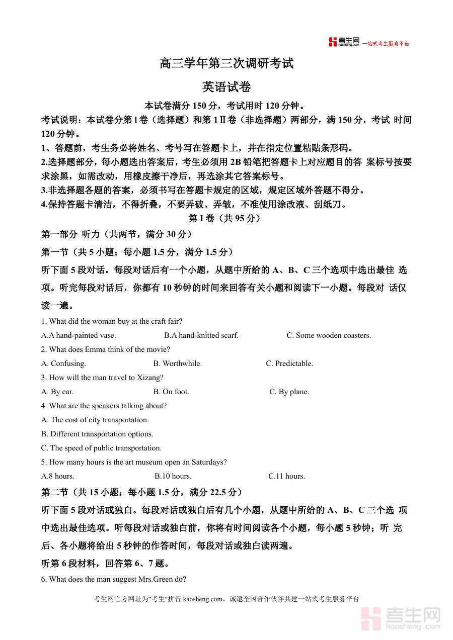 《精品解析:黑龙江省2025-2026学年高三上学期11月第三次调研考试英语试题(原卷版)》是一份针对黑龙江省高三学生阶段性复习检测的专业备考资料。该资料完整呈现本次调研考试的原始试题结构,包含详细考试说明(如答题卡使用规范、答题要求等)、听力部分(两节共20小题)、阅读理解部分(第一节A篇等)及后续未展示的题型模块,严格遵循当地调研考试命题风格与难度梯度。其特色亮点在于保留试题原始呈现形式,真实反映该阶段英语学科考查重点与命题趋势,为学生提供贴近实战的练习载体。