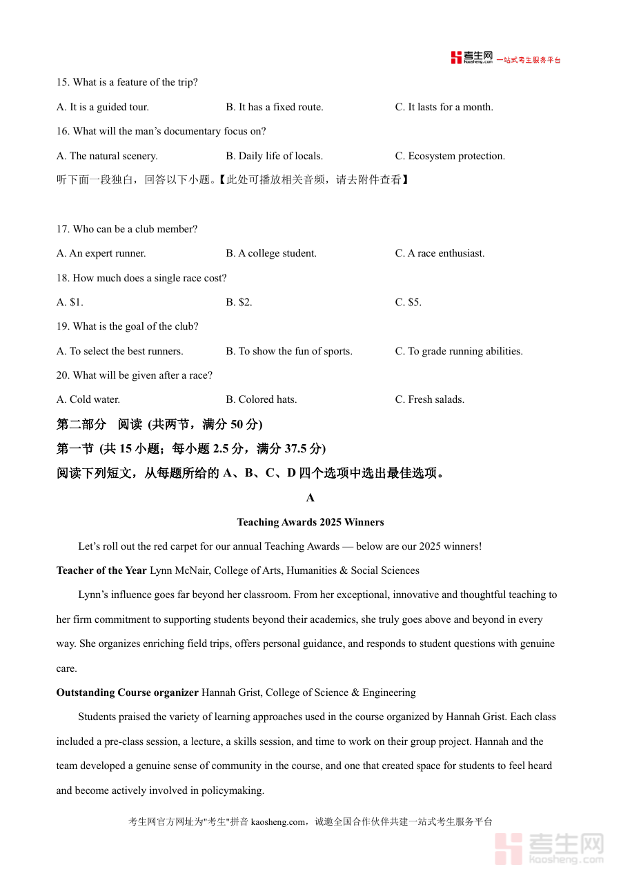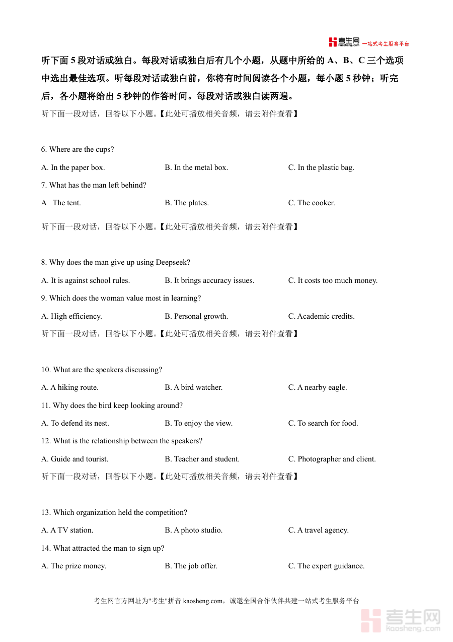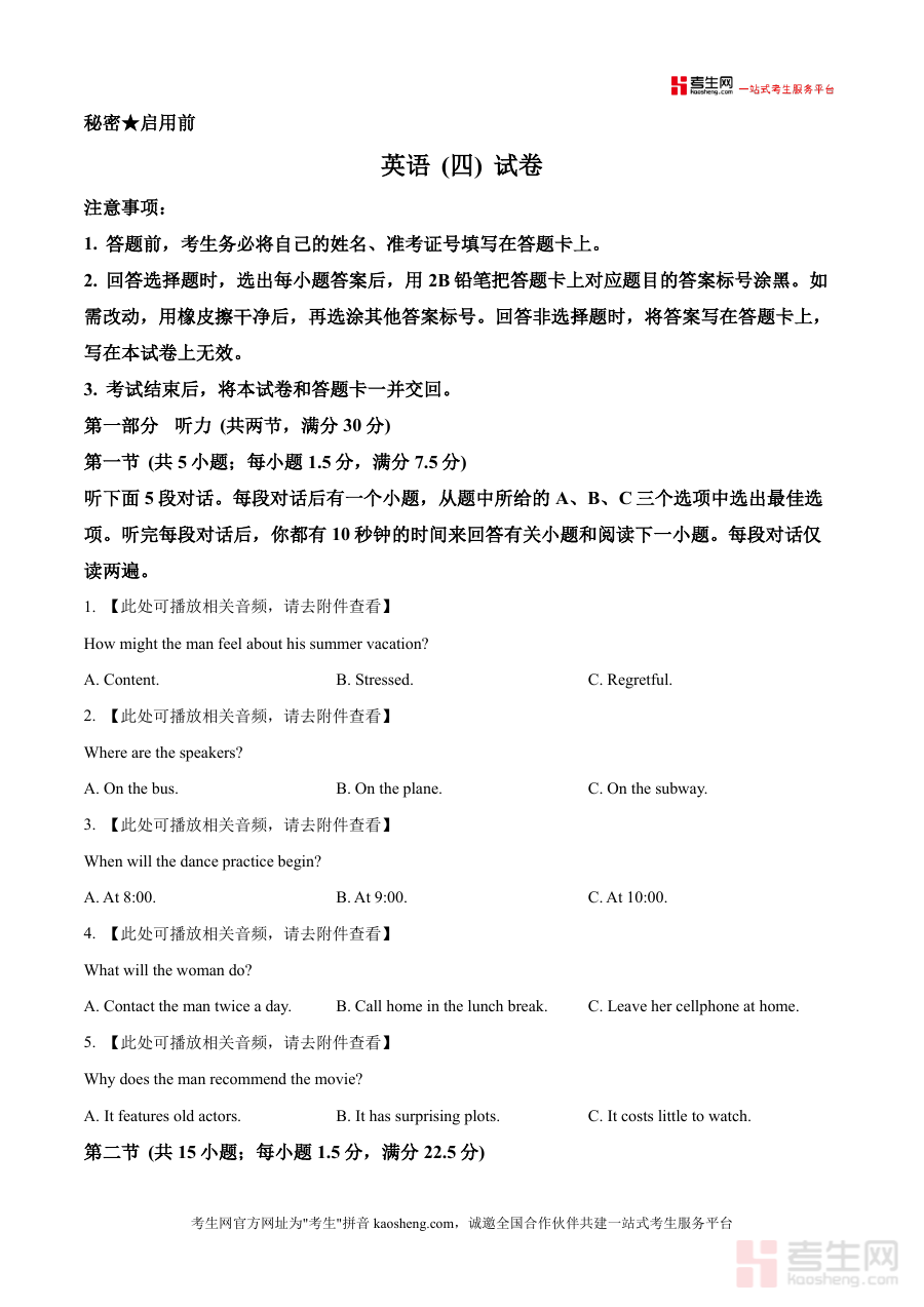 《精品解析:2026届云南省名校联盟高三第四次联考模拟预测英语试题(原卷版).docx》是一份针对2026届云南省高三学生设计的高质量模拟备考资料。该资料严格依据高考英语考试大纲编制,完整呈现了云南省名校联盟第四次联考的原卷内容,涵盖听力、阅读等核心题型,并附带规范答题要求与音频附件。其特色亮点在于贴近云南本地教学实际与高考命题趋势,阅读材料选取兼具时代性与教育意义的主题,能有效帮助学生熟悉考试形式与难度,为备考提供精准方向。