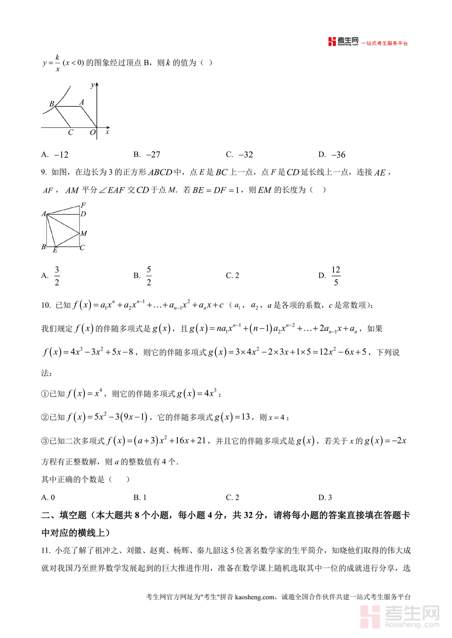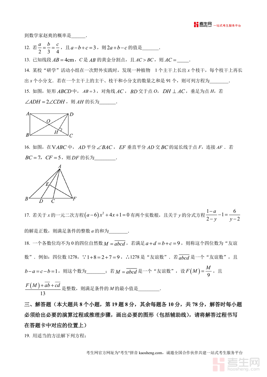 这份真题原卷主要用于九年级学生月考考前模拟训练与知识检测,适用场景包括课堂限时练习、课后自主复习及家庭辅导中的针对性测评。用户通过使用该资料,可熟悉月考题型结构与分值分布,精准定位知识薄弱点(如一元二次方程根与系数关系、反比例函数k值计算等),进而提升应试能力。备考优势体现在:一是真实还原考试场景,帮助学生适应答题节奏与时间管理;二是题目设计兼顾基础与拔高,既能巩固核心概念又能训练解题思维;三是与教学进度同步,可作为阶段性学习效果的有效检验工具,助力学生查漏补缺并优化复习策略。