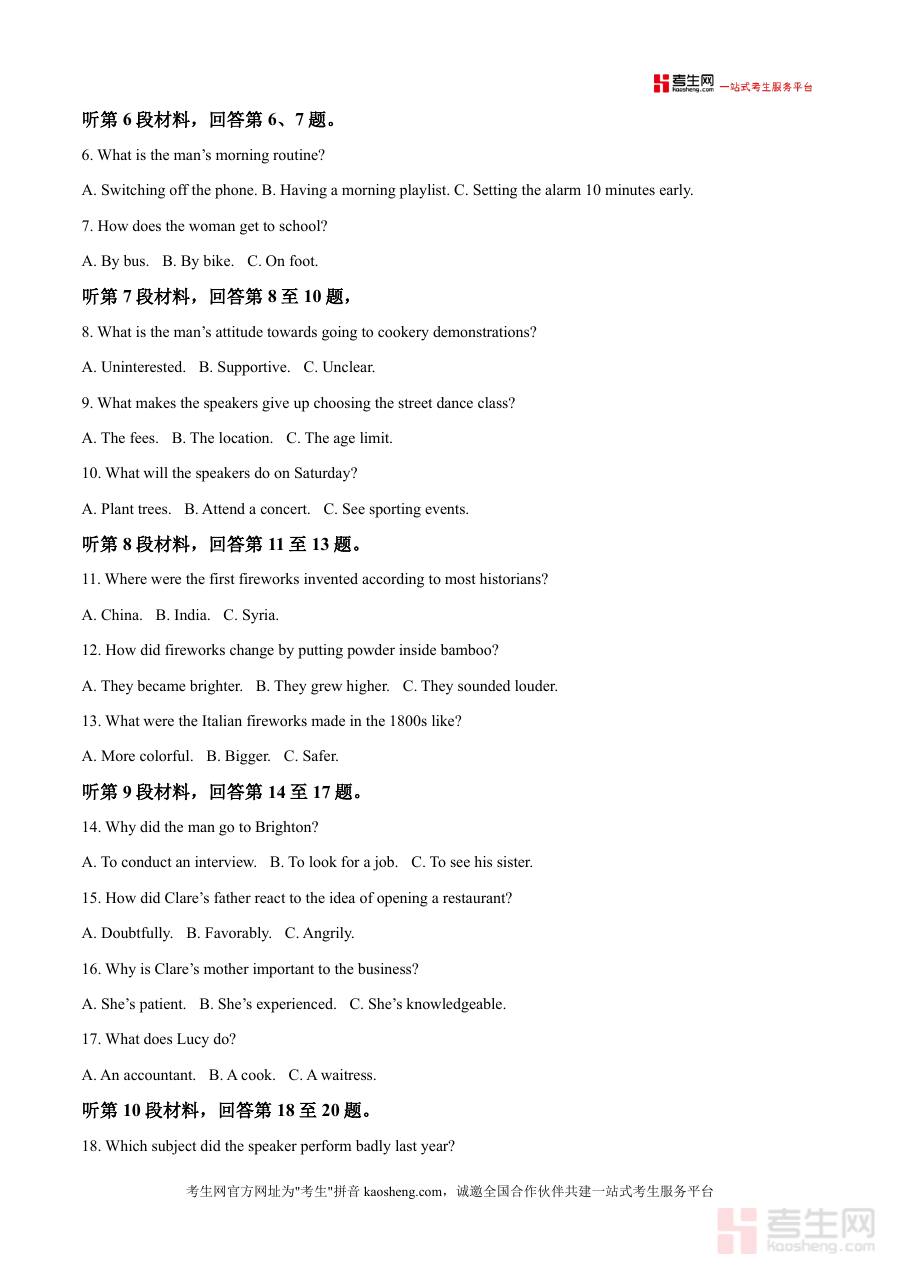 该试题的核心用途是帮助学生熟悉高考英语的题型分布、时间分配及答题规范,适用于日常自我检测、班级模拟考试及教师教学评估等场景。对学生而言,完成该试题可精准定位自身知识薄弱点,提升听力理解、阅读理解等关键应试能力;对教师而言,它能作为教学反馈的重要依据,辅助调整教学策略。其备考优势在于依托盐山中学的教学经验与本地命题思路,提供针对性练习内容,避免泛泛而练的低效问题。