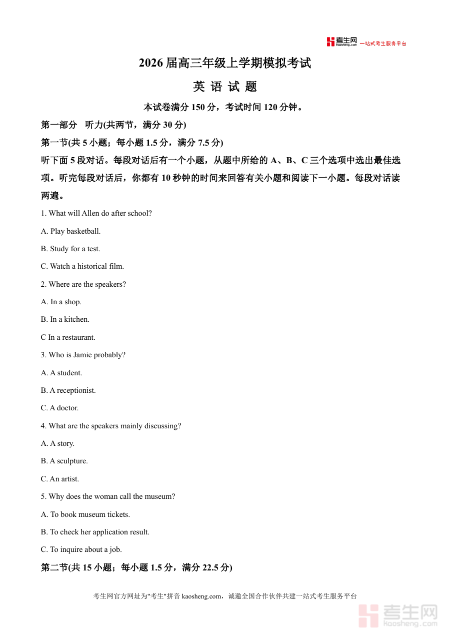 本资料适用于2026届河北省邢台市及周边地区高三英语学生、一线英语教师及备考辅导人员。作为高三上学期重要模拟考试解析资料,它能帮助学生查漏补缺巩固知识点,通过模拟真实考试环境提升应试心理素质;其不可替代性体现在对本地命题特色的精准把握,长期价值则在于为后续二模、高考复习积累解题经验与策略储备,是高三英语备考阶段不可或缺的优质备考资料之一。