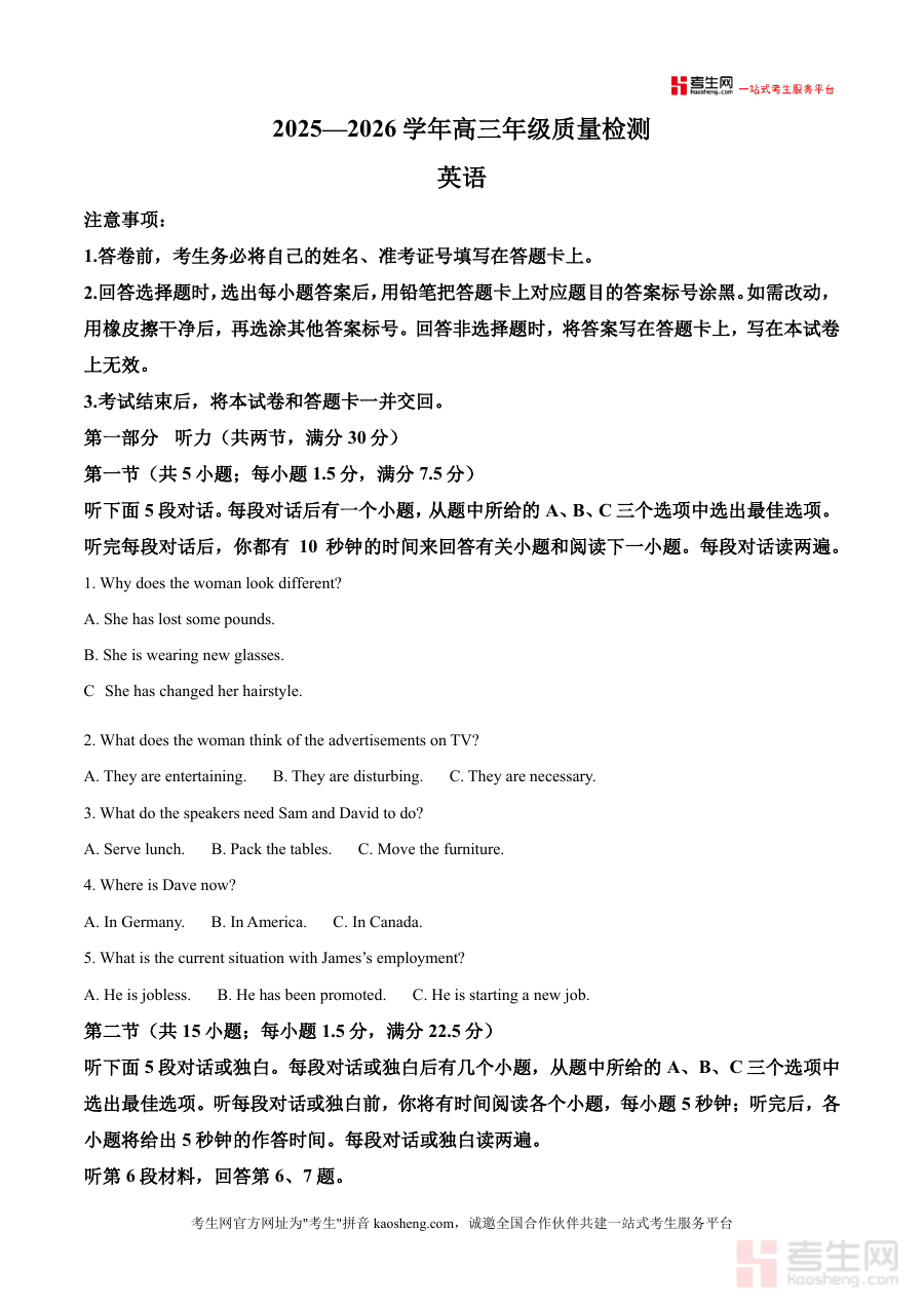 《精品解析:2026届河南省许昌市高三上学期模拟考试(三模)英语试题(解析版)》是一份针对河南省许昌市2026届高三学生英语备考的专业真题解析资料。它完整覆盖听力、阅读等核心题型,呈现原汁原味的考试题目(如听力场景化对话、阅读多样化题材),并提供详尽解题思路与答案解析。其特色亮点在于结合本地教学大纲与考试趋势,精准定位每道题的考点,并融入应试技巧指导,帮助学生理解题目考查逻辑,是真题解析类资料中的优质范本。