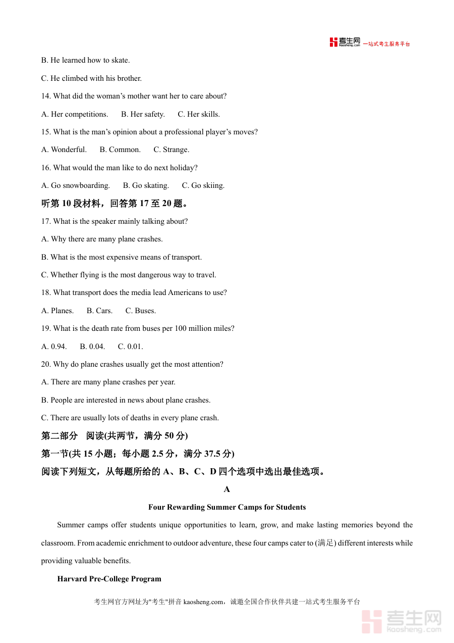 这份资料核心用途是助力学生熟悉高三英语模拟考试题型结构与难度水平,提升应试能力。使用场景广泛:学生可自主复习时对照解析查漏补缺;教师可作为课堂教学辅助资源讲解典型题目与策略;家长可参考了解孩子备考进度。用户价值体现在快速掌握不同题型解题方法,如听力关键信息捕捉、阅读主旨归纳与细节定位,有效提高答题准确率与速度,在备考中占据优势。