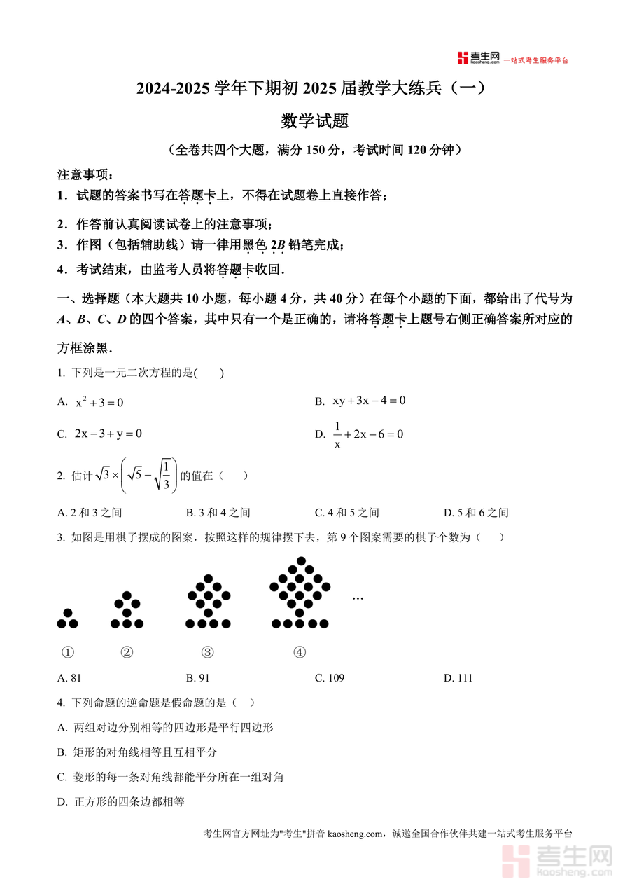 这份资料核心用途在于帮助教师精准掌握学生初期学习状况引导学生进行针对性复习与能力提升。使用场景包括课堂教学检测学生自主练习与错题分析家长辅助孩子学习规划等。对学生而言通过完成该试题可巩固已学知识体系熟悉考试题型与答题规范提升应试能力;对教师而言可作为教学效果评估工具优化后续教学策略。其备考优势体现在试题贴合区域教学进度与难度要求能有效帮助学生提前适应中考题型结构强化薄弱环节提升综合解题能力。