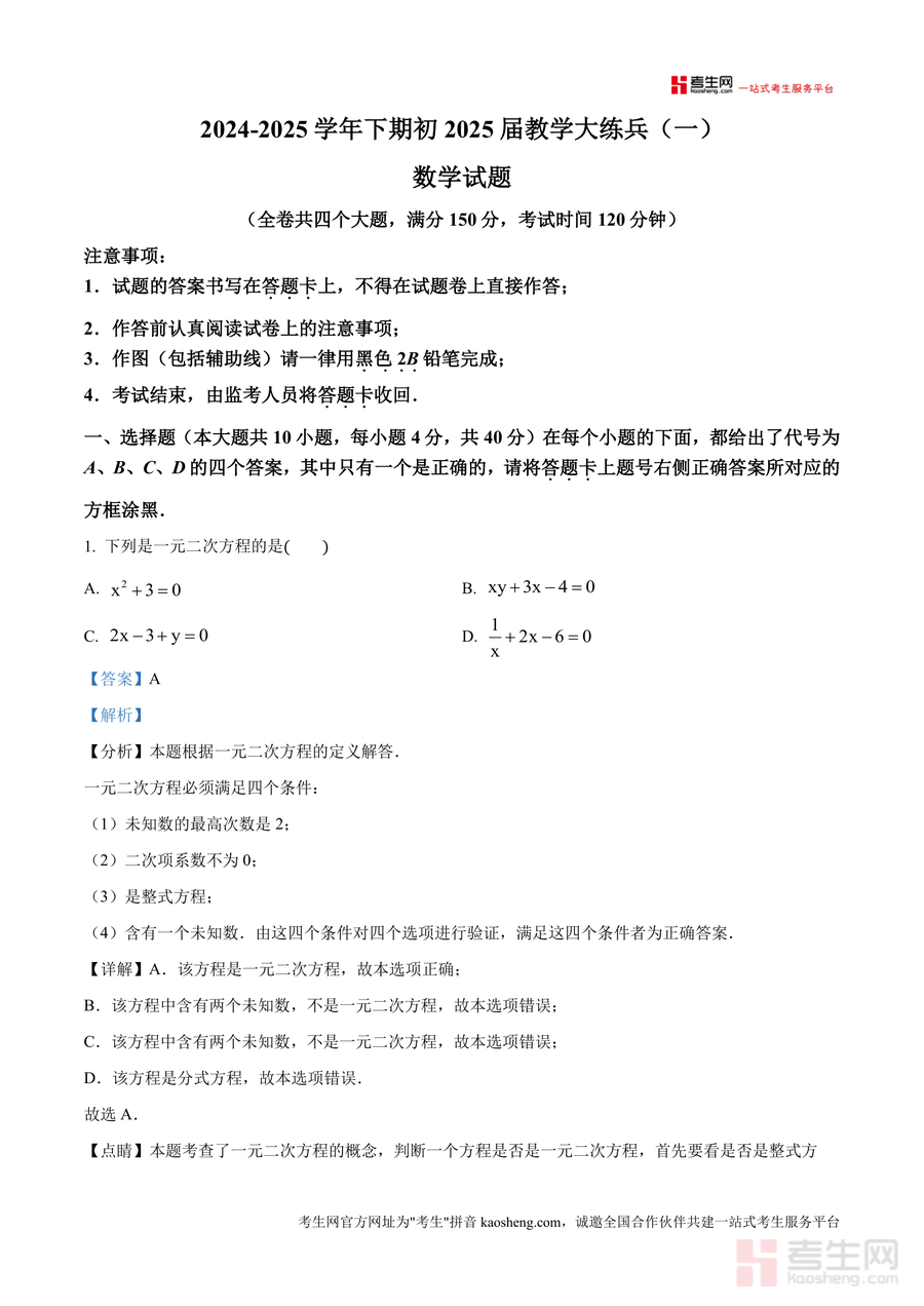 该资料核心用途为辅助九年级学生巩固数学核心知识、提升应试能力,适用于课后针对性复习、考前真题模拟训练及错题深度复盘等场景。对学生而言,通过真题解析可直观掌握本地考试命题方向与题型特点,快速定位知识薄弱点;对教师及家长,则可作为教学参考或辅导依据,助力精准把握学生学习状态。其备考优势在于贴合本地教学进度,解析详实且具有指导性,能有效帮助使用者将知识转化为解题能力。