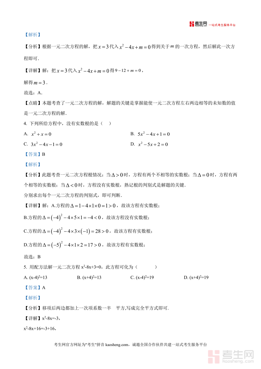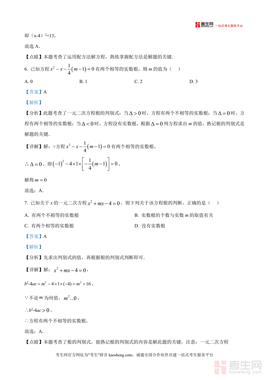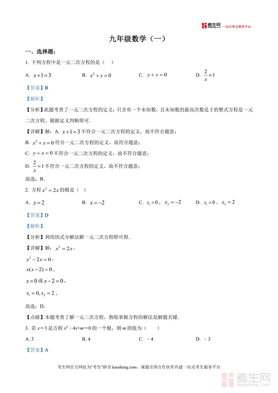 《精品解析:重庆市秀山区多校2024-2025学年九年级上学期第一次月考数学试题(解析版)》是一份针对重庆秀山区九年级上学期第一次月考联考数学科目的专业备考资料。文件覆盖一元二次方定义、解法(因式分解法、配方法)、根判别式应用及增长率类实际应用题等核心考点,并通过每道题详细分析、步骤详解及点睛提示呈现解题思路与方法。其特色在于结合本地多校联考命题方向,精准匹配九年级上册数学重点内容,解析注重逻辑推导与考点关联,助力学生理解深层知识。