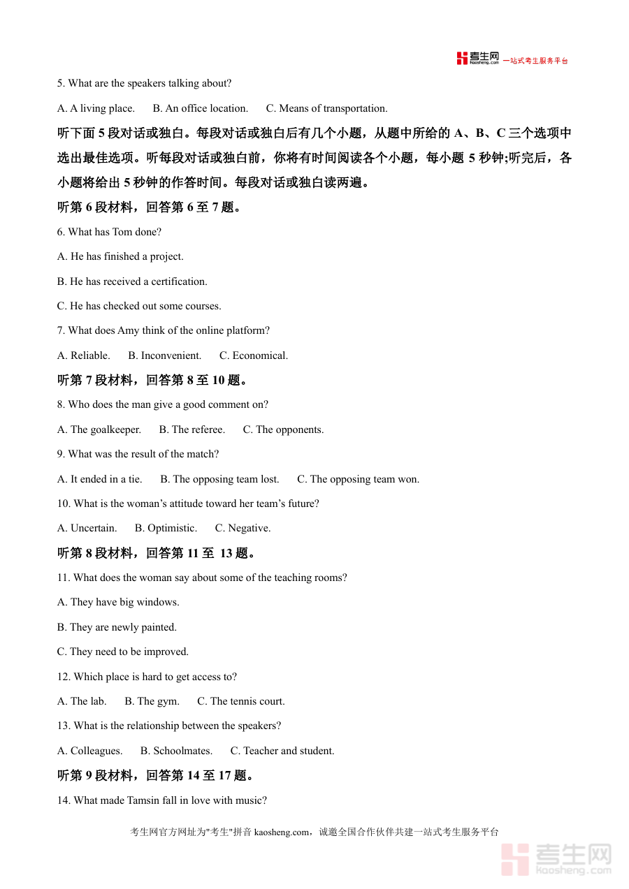 该资料的核心用途是帮助学生熟悉高考英语的题型设置、答题节奏及评分标准,使用场景覆盖日常自主练习、班级模考模拟、教师课堂教学辅助等多个环节。用户价值体现在通过真题训练提升应试能力,尤其是听力理解的信息捕捉能力、阅读理解的逻辑分析能力及非选择题的语言表达能力;备考优势在于其作为名校模考真题的独特性,能有效帮助学生查漏补缺,优化答题策略,并提前适应高考级别的试题难度与命题风格,为后续复习规划提供精准依据。