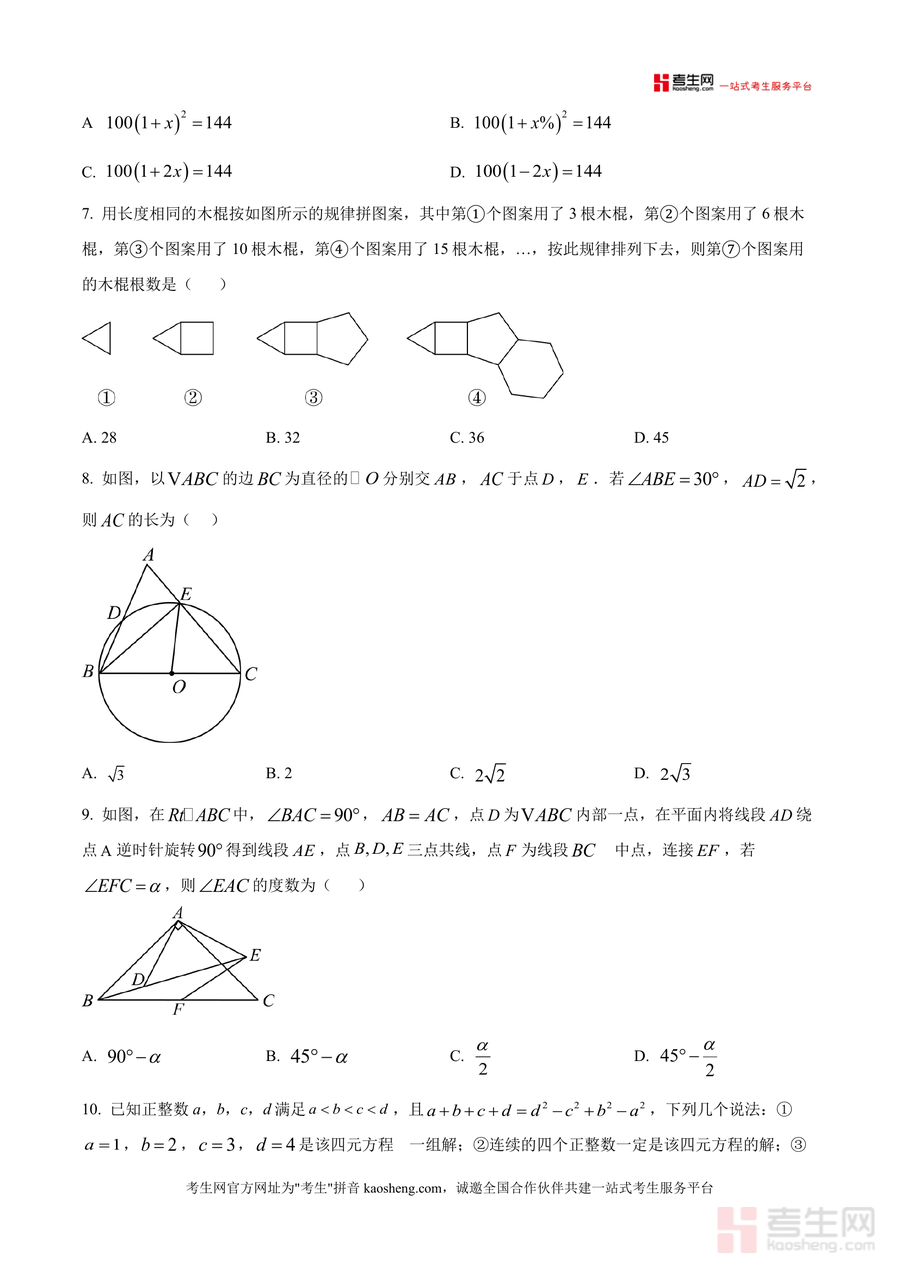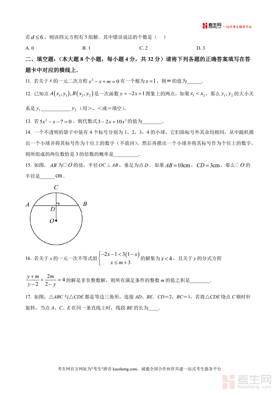 这份试题核心用途在于帮助九年级学生进行开学后学习能力摸底,定位知识薄弱环节;使用场景包括学生日常自主练习、教师课堂模拟测试或备课参考,以及家长辅助孩子制定备考计划。通过完成该真题,学生可熟悉考试题型与时间分配,提升应试能力;教师能借助试题了解学生知识掌握情况,调整教学策略;家长则可直观把握孩子学习进度。其备考优势在于原卷还原真实考试情境,让使用者提前适应考试节奏,精准提升解题技巧与实战能力。