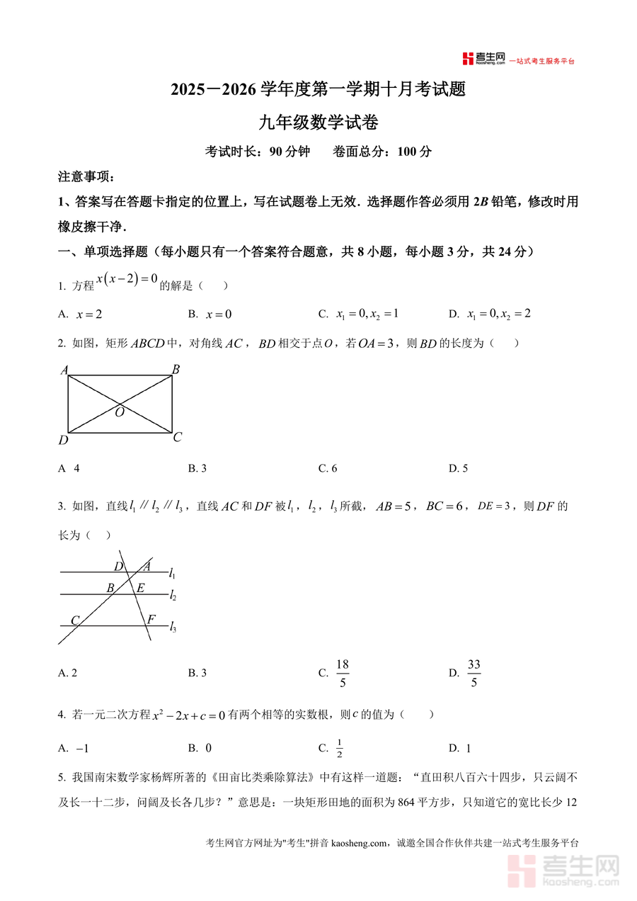 本试卷适用于九年级数学学习者、初中数学教师及关注孩子中考备考的家长群体;作为南外海德学校这样的优质校月考原卷,其具有不可替代性,能帮助学生精准把握区域命题规律,提升备考效率,对学生构建完整知识体系、增强中考竞争力具有长期价值。