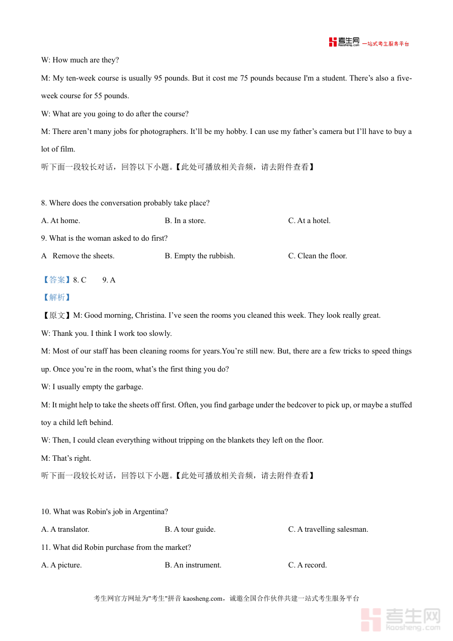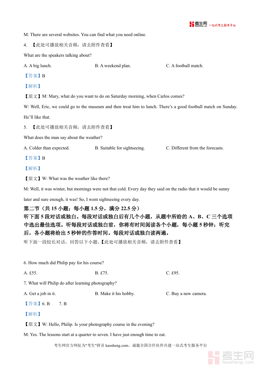 该资料的核心用途包括高三学生日常听力专项训练、教师课堂教学案例参考及家庭备考辅助工具。使用场景覆盖课后自主练习、阶段性模拟测试及错题针对性复盘。用户价值体现在通过真实模拟高考听力题型与难度,让学生提前适应考试节奏;详细解析则助力学生理解错误原因,弥补听力理解短板。备考优势显著:其题目设计紧密贴合四川省高考英语听力命题特点,解析部分注重方法迁移,有效提升学生应试能力,为后续复习奠定坚实基础。