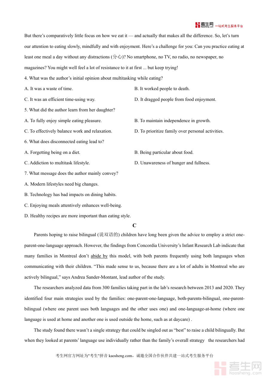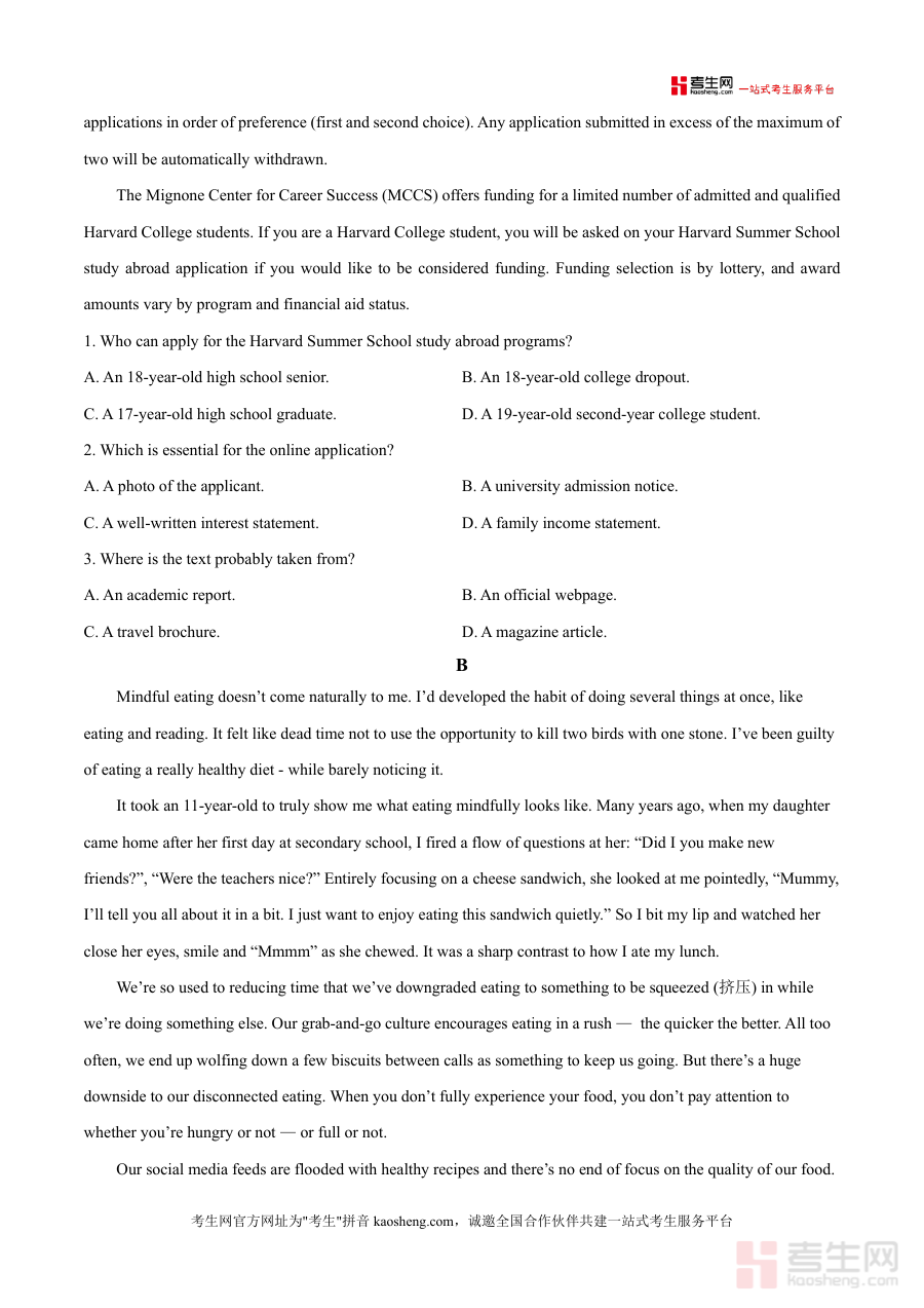 《精品解析:广东省茂名市信宜市信宜中学2025-2026学年高三上学期开学英语试题(原卷版)》是一份针对新高三学生过渡阶段设计的全知识点通关英语备考资料,由信宜中学教研团队依据最新高考英语考试大纲及本地教学实际编制而成。该试题涵盖高考英语核心题型,包括阅读(两节共50分)等模块,阅读部分选取贴近学生认知水平且具有实际应用价值的素材,如哈佛大学暑期项目申请指南、正念饮食等主题,既考查语言能力又拓展学科视野。其特色在于严格遵循高考时间与分值设置(120分钟120分),并融入学校多年教学经验总结的高频考点,帮助学生快速适应高三英语学习节奏。