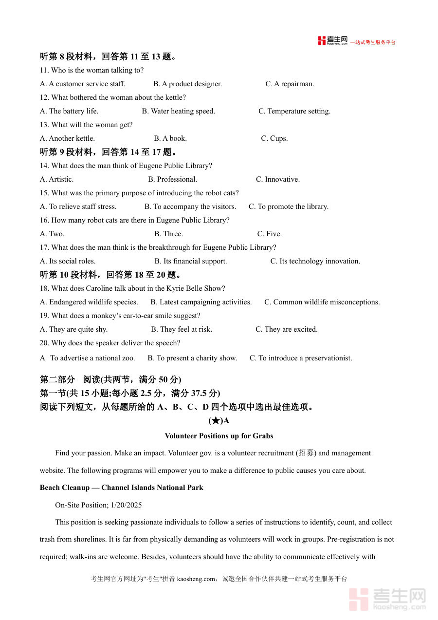 《精品解析:湖南省长沙市天心区长沙市长郡中学2025-2026学年高三上学期开学英语试题(原卷版)》是一份由国内知名重点中学长郡中学编制的高质量高三英语备考资料,作为“精品解析”系列核心组成部分(含原卷与配套详细解析),旨在为高三学生提供贴合高考命题趋势的实战性检测工具。该试题严格遵循湖南省高考英语考试大纲要求,涵盖听力、阅读、写作等完整题型——听力部分含两节共20小题(涉及日常对话、独白等真实场景),阅读部分选取志愿者招募等多样化题材短文,全面考查学生语言理解与运用能力。其特色亮点在于依托长郡中学深厚教研积淀,试题设计既注重词汇语法等基础知识巩固,又突出应试能力提升,能精准反映高三初始阶段学生真实水平。