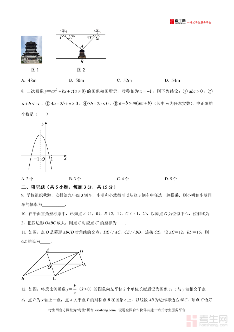 《精品解析:广东省深圳市龙岗区龙岭学校2025-2026学年九年级上学期12月月考数学试卷(原卷版).docx》是一份针对深圳市龙岗区龙岭学校九年级学生设计的校考原卷类备考资料。文件包含完整月考数学试卷结构,涵盖选择题(8小题共24分)、填空题(5小题共15分)及解答题三大模块;题型覆盖一元二次方程根判别式、三视图识别、位似图形性质、四边形判定与性质、三角函数应用、二次函数图象与性质、概率计算等九年级上学期核心知识点,题目设置贴合该校教学进度与命题风格。原卷版呈现确保内容真实性与针对性,为学生提供与实际月考一致的练习场景。