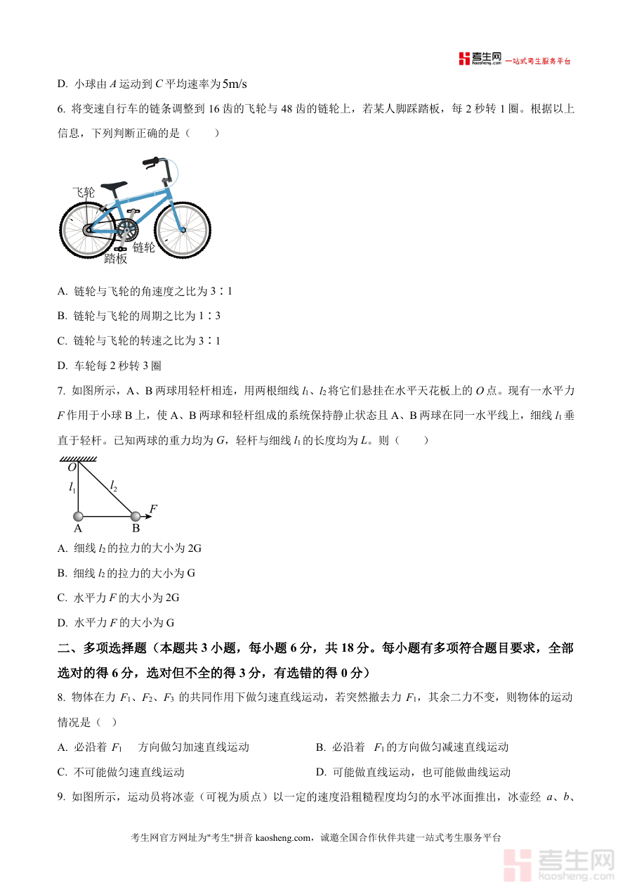 该资料适用于高三上学期物理一轮或二轮复习阶段,可作为课堂同步训练、课后巩固练习或阶段性模拟测试的核心载体;考生通过完成试题,能有效检测对圆周运动、平抛运动等知识点的掌握程度,提升审题逻辑与解题技巧;教师可利用其进行针对性教学,帮助学生梳理易错点(如向心力来源判断、实验数据处理等),强化应试能力;原卷版设计便于考生模拟真实考试场景,提前适应高考物理答题节奏与时间分配要求,助力备考效率提升。
