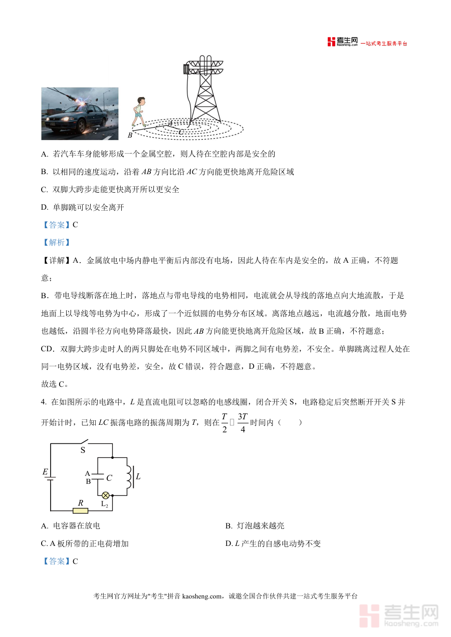 该资料核心用途为高三学生自主复习时进行真题演练与错题订正,也可作为教师课堂讲评或课后辅导参考材料;使用场景涵盖学生模拟训练后的知识漏洞梳理、教师教学方案优化等。用户价值体现在通过精准解析帮助学生掌握不同题型解法——如LC振荡电路中电容器充放电过程分析、链条拉力做功的动能定理应用等,有效提升应试能力;备考优势在于其贴合高考要求,能缩短学生错题反思时间,强化知识迁移能力,为高效备考提供有力支持。