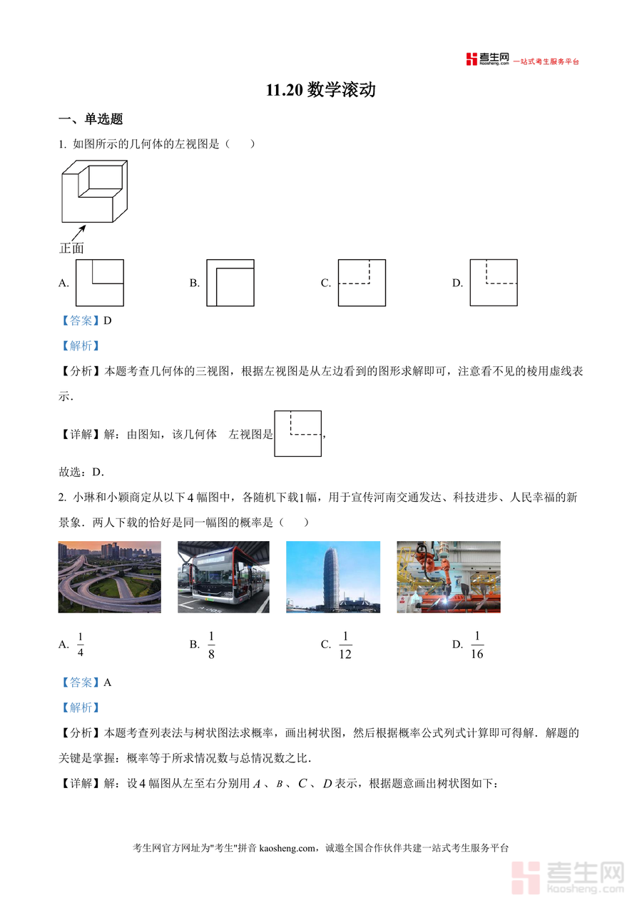 《精品解析:广东省深圳高级中学盐田学校2025-2026学年上学期九年级数学11月月考滚动试卷(解析版)》是一份针对九年级数学阶段性复习需求 的优质备考资料,聚焦11月月考核心考点涵盖几何体三视图、概率计算、特殊四边形判定等九年级上册重点知识模块。文件包含完整试卷原题及逐题解析部分不仅给出正确答案还详细呈现考点分析解题思路及易错点提示如对黄金分割比例应用类题目明确公式推导过程对反比例函数与一次函数图像综合题拆解系数与图像象限关系逻辑链同时标注各题对应教材章节及能力要求为学生构建清晰知识框架。