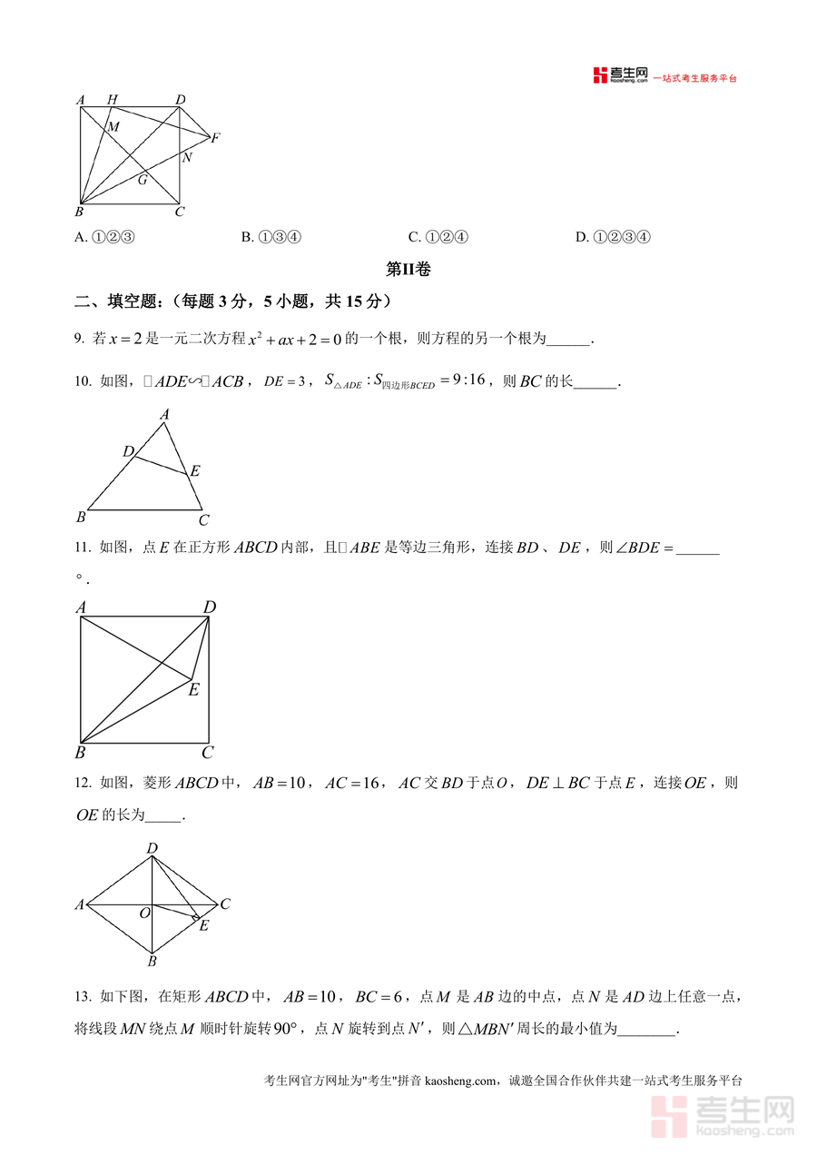 该资料主要适用于深圳实验学校2026届九年级学生,也适合深圳市其他重点中学九年级学生参考,同时可作为数学教师了解名校命题趋势的辅助工具。其必要性体现在开学考是九年级重要起点检测,反映暑期复习效果与知识掌握程度;作为该校真实考试原卷,不可替代性在于精准对标教学重点难点,帮助针对性备考。长期来看,该试卷可作为后续复习回顾基础知识点、强化解题技巧的优质素材,对整个九年级数学学习具有持续指导价值。