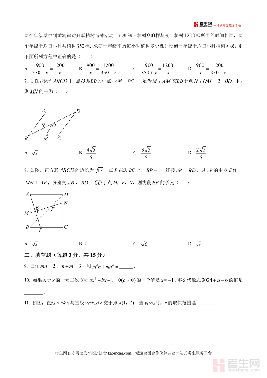 《精品解析:广东省深圳市亚迪学校2024-2025学年九年级上学期开学考试数学试题(原卷版).docx》是一份针对深圳亚迪学校九年级学生开学阶段数学学习情况检测的权威备考资料。该资料涵盖选择题(8道)、填空题(5道)及解答题(7道)三大核心题型,题目覆盖轴对称图形与中心对称图形判别、分式值为零条件、一元二次方程根判别式、矩形菱形性质应用、函数图像交点分析、几何折叠问题等九年级上册核心知识点,题型结构与中考数学命题趋势高度契合,且题目设计紧密贴合深圳本地教学考纲与亚迪学校教学特色。
