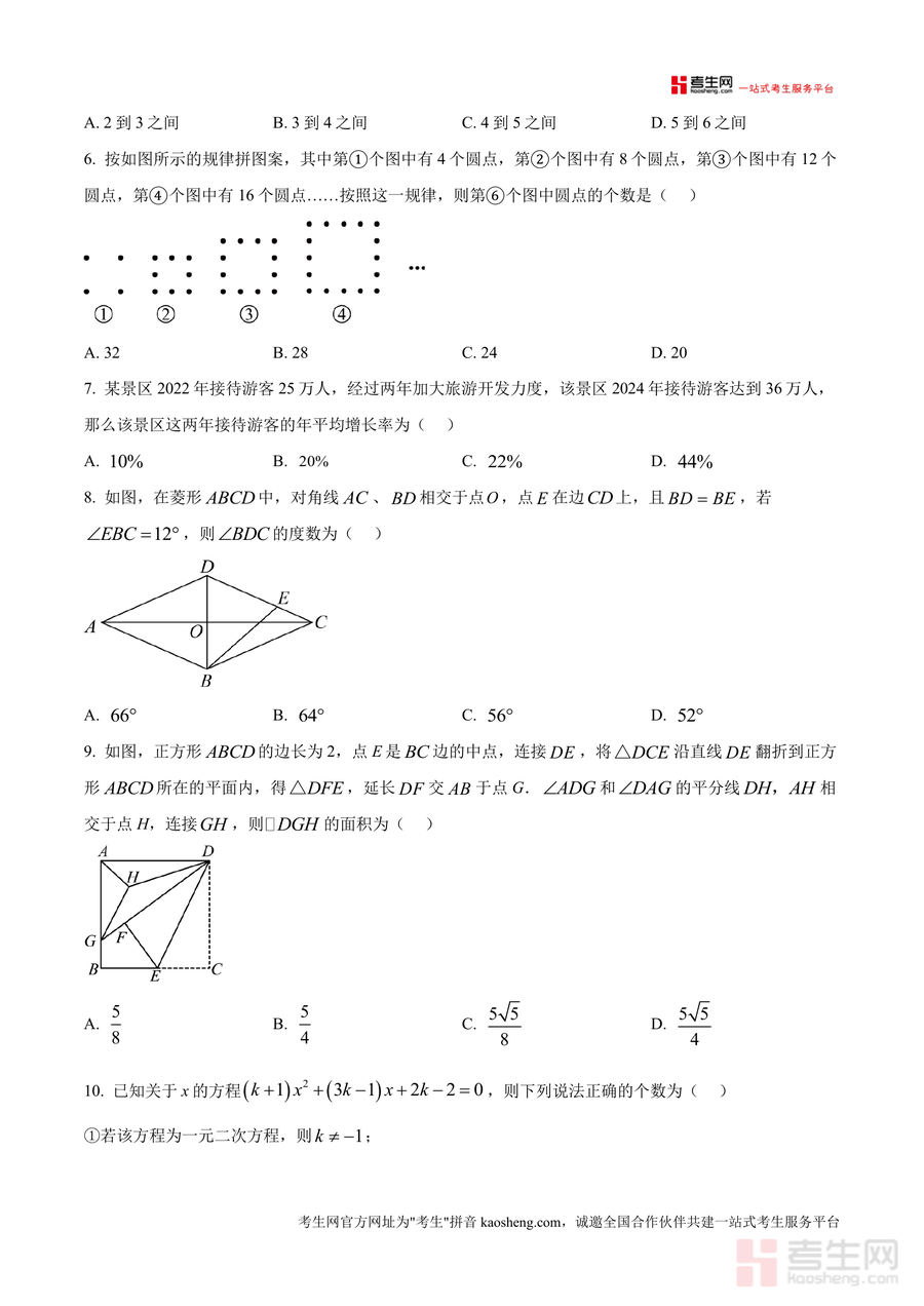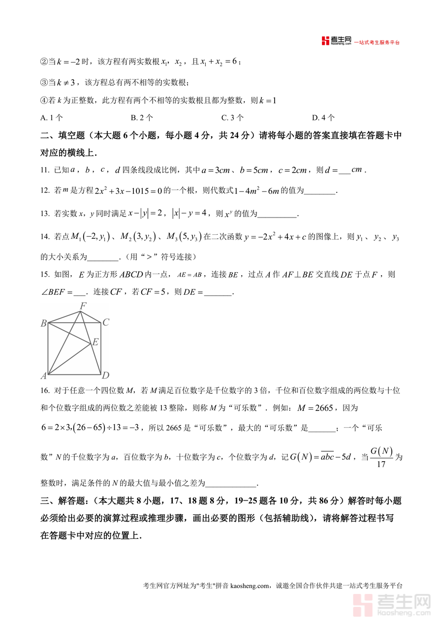 该资料核心用途为九年级学生数学阶段性复习检测与应试能力提升,适用场景包括课堂同步练习、课后自主刷题、考前模拟训练等。对学生而言,通过完成试题可明确自身知识薄弱环节,针对性补强;对教师而言,可作为阶段性测评工具或教学参考资料。其备考优势在于能让学生提前适应中考题型节奏与答题规范,培养时间管理能力,同时通过典型题目的练习掌握解题技巧,提升应试信心,为后续系统复习奠定坚实基础。