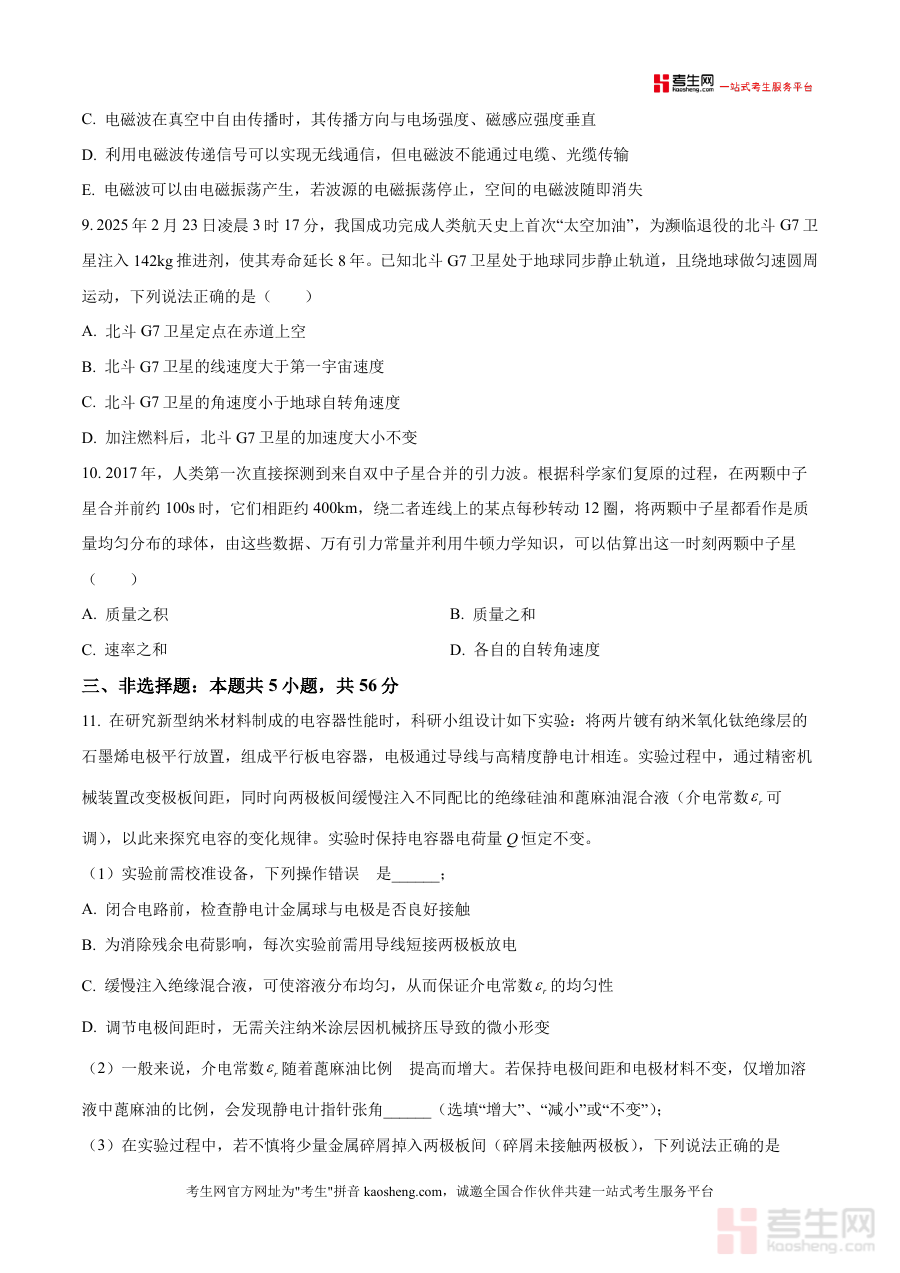适用人群为2026届湖南省永州市祁阳市高三物理教师及学生,也适用于其他地区对标湖南高考物理考纲开展一轮复习的学习者。该文件作为本地一轮复习检验原卷资料,具有不可替代的区域针对性,能真实反映本地备考要求;其长期价值在于可作为复习过程中的重要参考资料,帮助学生巩固核心知识、强化解题技巧,为高考物理取得优异成绩奠定坚实基础。