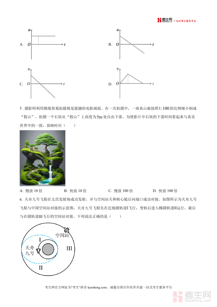 《精品解析:广东省四校普通高中教学质量检测2025-2026学年高三上学期10月月考物理试题(原卷版)》是一份针对广东省高三物理备考设计的区域联考真题资料,由佛山市第二中学命题及高三物理备课组审题,严格遵循高考物理命题规范与考查要求。资料包含单项选择题7题、多项选择题3题及非选择题5题(含实验探究题与综合计算题),题型覆盖匀变速直线运动、受力分析、天体运动等核心考点,并结合人形机器人马拉松、天舟九号对接等时事热点创设情境,既体现知识应用价值又贴近生活实际,为考生提供真实联考训练场景。