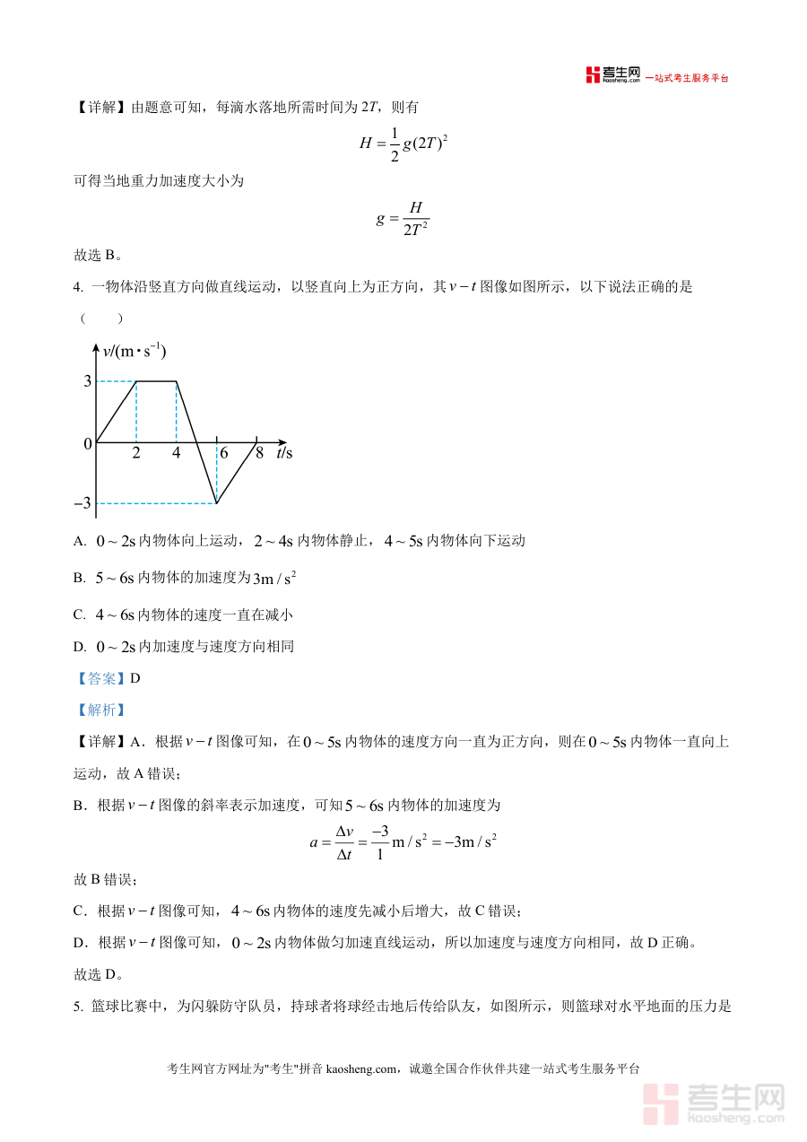 该资料核心用途在于支持高三学生开展针对性真题训练与知识点巩固:课堂中可作为教师讲解联考真题的配套资源,辅助学生理解考点本质;课后可用于学生自主复习时剖析错题根源、总结解题技巧;对于备考阶段学生,通过该解析能清晰把握考点分布(如运动学、力学平衡等重点模块)、提升应试能力,有效减少盲目刷题损耗,实现高效备考目标。此外,教师可借助该资料优化教学方案,精准定位学生薄弱环节,提升教学效率。