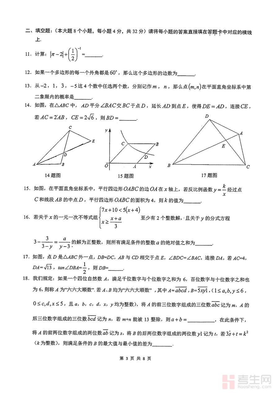 该试卷作为优质备考资料,核心用途是帮助初三学生进行半学期学习效果的自我检测与知识点查漏补缺,使用场景包括学生考前模拟训练(按照半期考试时间规范作答)、教师课堂教学参考(用于分析学生常见错误点)以及家长辅助孩子复习(了解孩子知识掌握情况)。其用户价值在于让学生熟悉重庆一中的命题风格与难度水平,提升应试能力;备考优势在于试卷内容紧密贴合重庆中考数学的命题趋势,能帮助学生提前适应中考题型结构与思维方式,尤其是压轴题部分的设计可有效锻炼学生的综合解题能力。