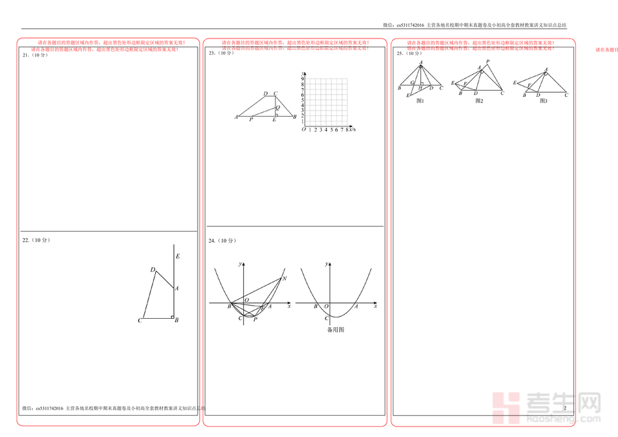 该资料的核心用途为辅助学生熟悉期中数学考试的答题规范与格式要求,适用场景涵盖课堂内的模拟测试、课后自主练习及考前适应性训练;其用户价值在于帮助学生养成规范书写、按区域答题的习惯,有效减少因格式错误或答题位置偏差导致的失分;备考优势体现在严格遵循重庆本地期中数学考试的命题趋势与人教版知识点覆盖范围,让学生在练习过程中同步提升应试能力,提前适应考试节奏与答题压力。