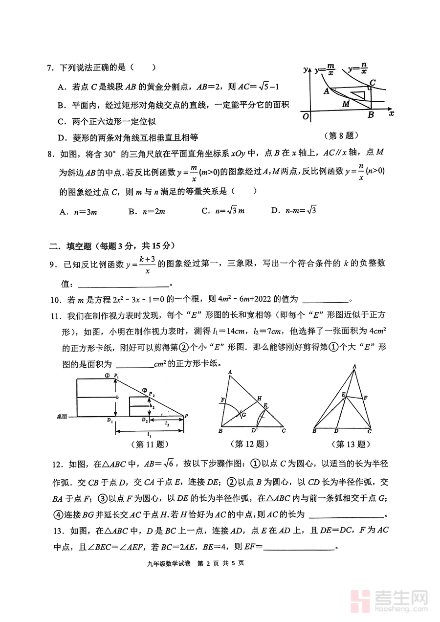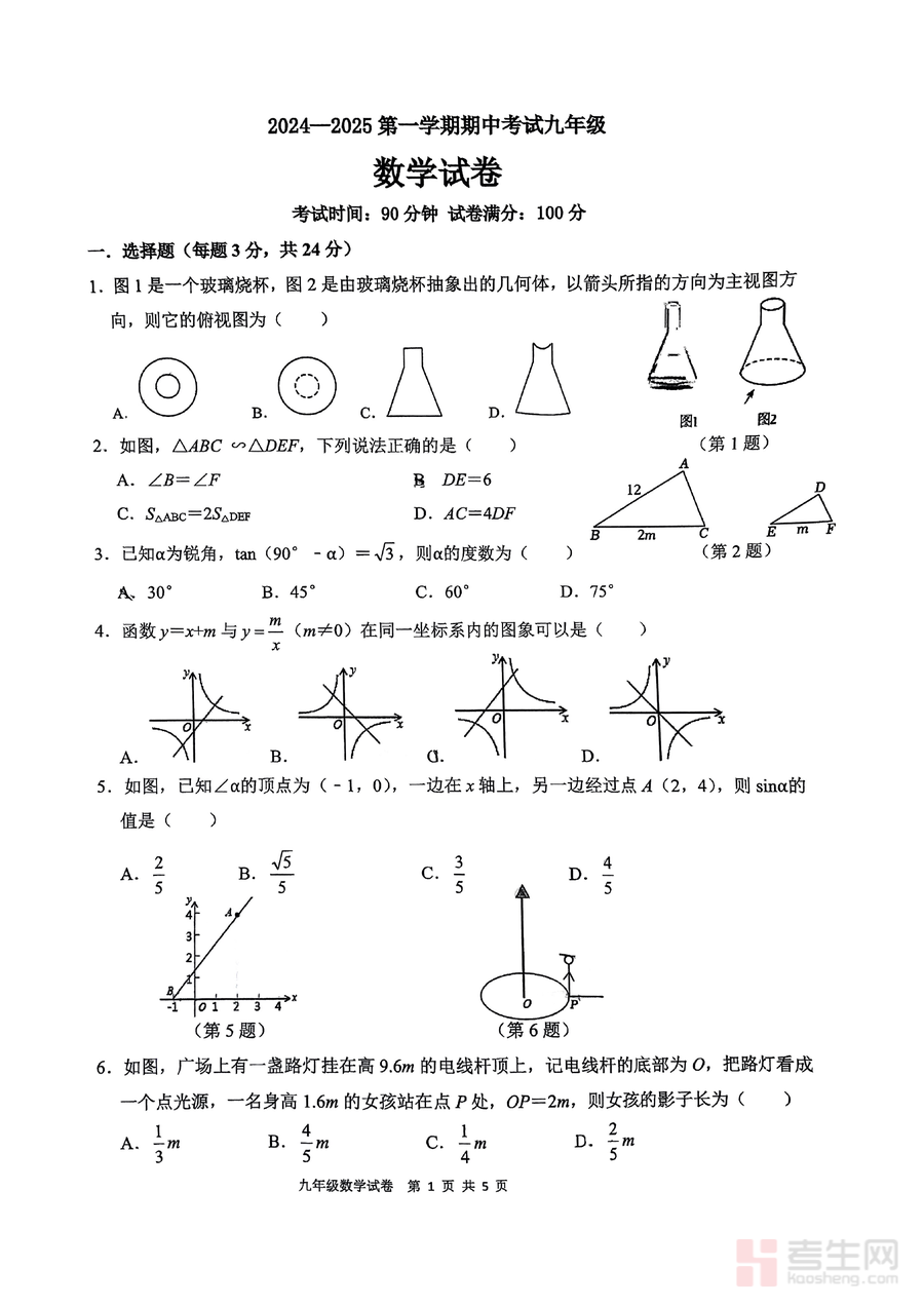 该资料适用于深圳地区九年级学生(尤其是目标深圳实验学校或同类重点初中的学生)、初中数学教师(用于教学资源补充或命题参考)以及关注孩子数学学习的家长。作为一份来自顶尖初中的期中真题试卷,它具有不可替代的参考价值,是学生了解名校考试标准、检验学习成果的重要工具;长期来看,这份试卷可作为九年级上册数学知识点的复习资料,帮助学生巩固核心内容,为中考阶段的系统复习积累宝贵经验。