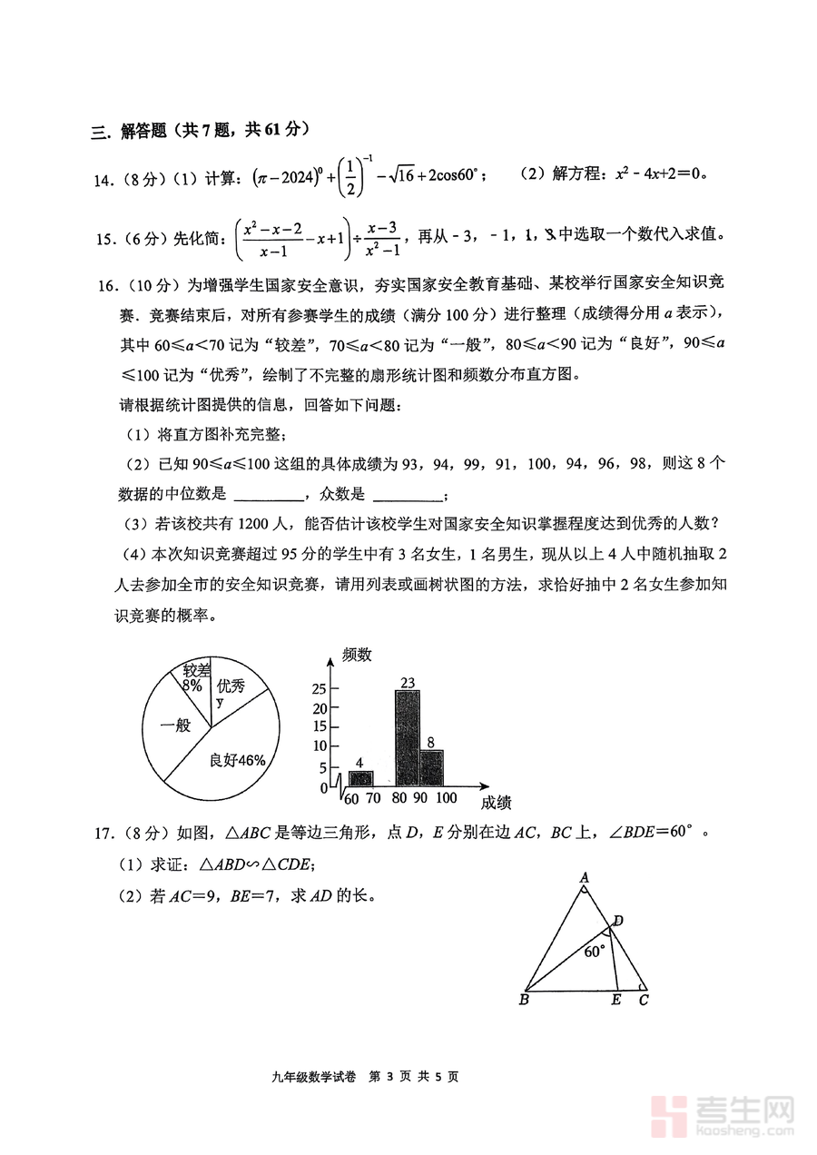 这份试卷的核心用途是助力九年级学生进行期中备考及知识巩固。使用场景包括学生自主模拟考试(按照考试时间完成试卷以训练时间管理能力)、教师课堂练习或单元测试的参考素材、家长辅助孩子进行针对性复习的工具。其用户价值体现在帮助学生熟悉期中试卷的题型结构与分值分布,提前适应考试节奏,通过完成真题发现自身知识点漏洞并进行针对性补强;备考优势在于作为名校真题,其题目质量高、参考性强,能有效提升学生的应试能力与解题技巧,为后续的期末复习及中考备考奠定坚实基础。
