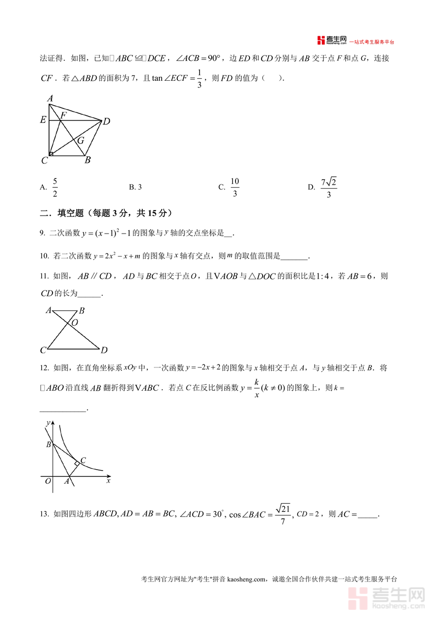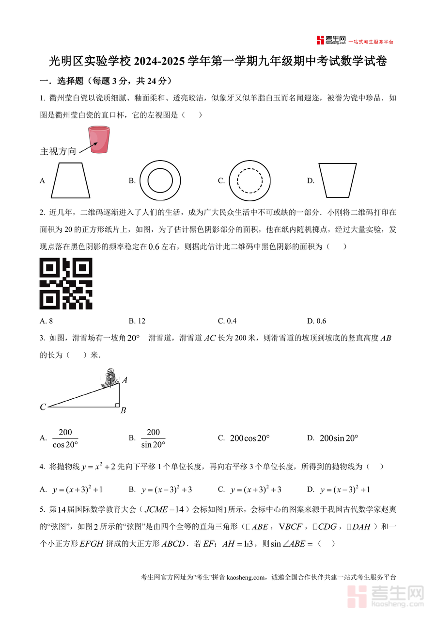 适用人群为深圳市光明区实验学校及周边区域九年级学生、初中数学教师及关注孩子期中备考的家长。该试卷作为本地名校期中真题资源,具有稀缺性与针对性,是学生期中备考不可替代的重要资料,其涵盖的核心知识点与解题方法也可为后续中考复习奠定坚实基础,具有长期参考价值。