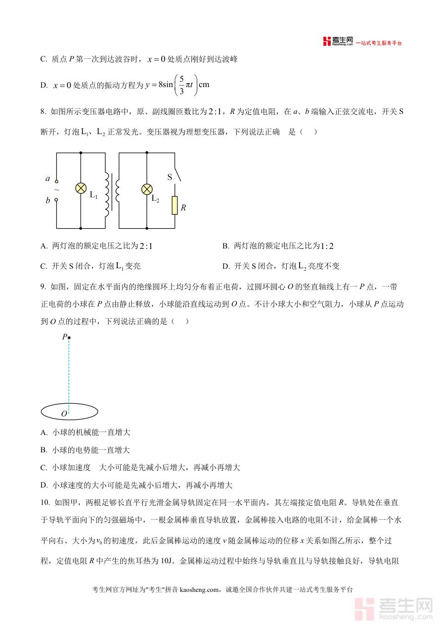 《精品解析:2026届云南省云南民族大学附属中学高三上学期联考卷(三)物理试题(原卷版)docx》是一份面向2026届高三物理备考群体设计的高质量联考原卷资料,核心定位为还原云南民族大学附属中学高三阶段性联考真实命题场景与考场规范。资料包含完整试卷结构:共6页15小题,满分100分,考试用时75分钟;内容涵盖选择题(第1-7题单选、8-10题多选合计46分)与非选择题(实验题2道、计算题3道合计54分),覆盖力学(运动学、机械能守恒)、电磁学(电磁感应、变压器)、原子物理(碳14衰变)、振动与波等高考核心模块;特色亮点在于严格遵循本地联考命题规律,题型设置与考点分布贴合高考最新趋势,同时包含规范考场注意事项,助力考生提前适应考试流程。